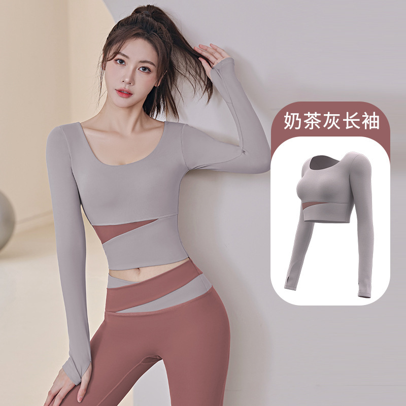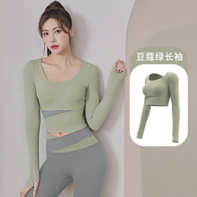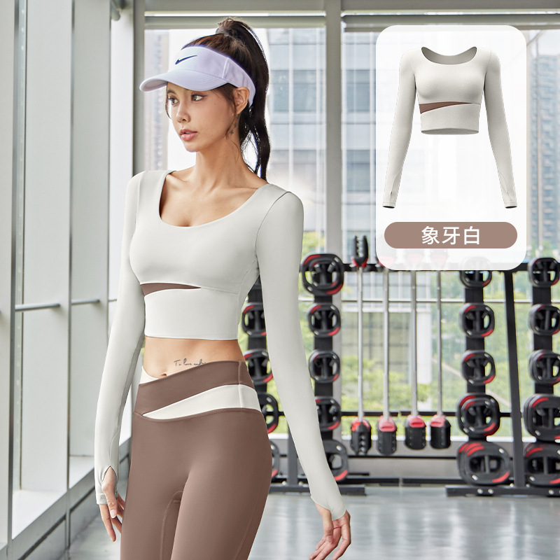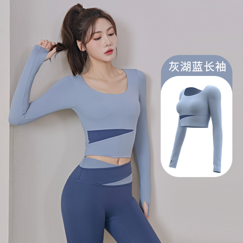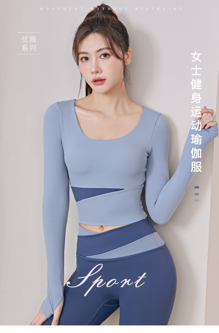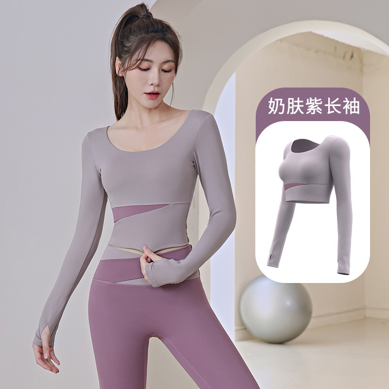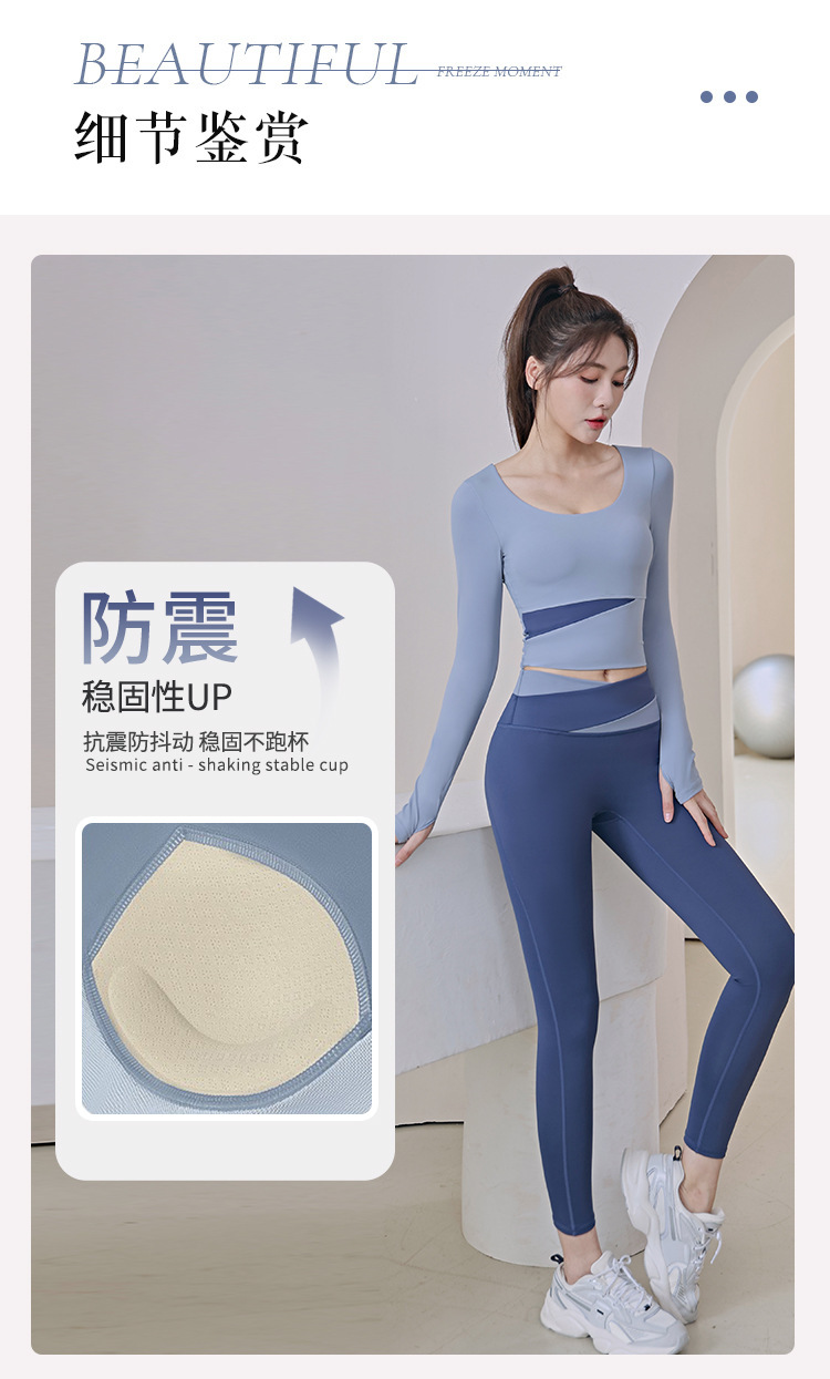 Juyitang 컬러 매칭 롱 요가 세트 원활한 알몸 피트니스 세트 원활한 슬리밍 스포츠 세트 여성스토어 가기