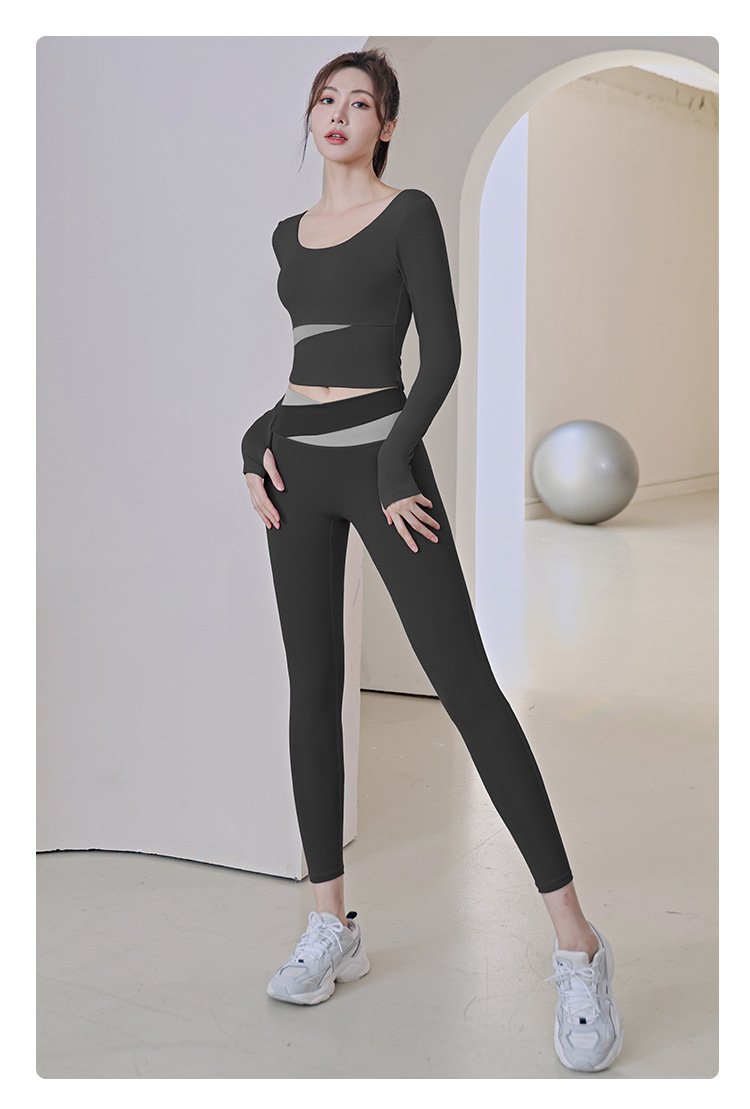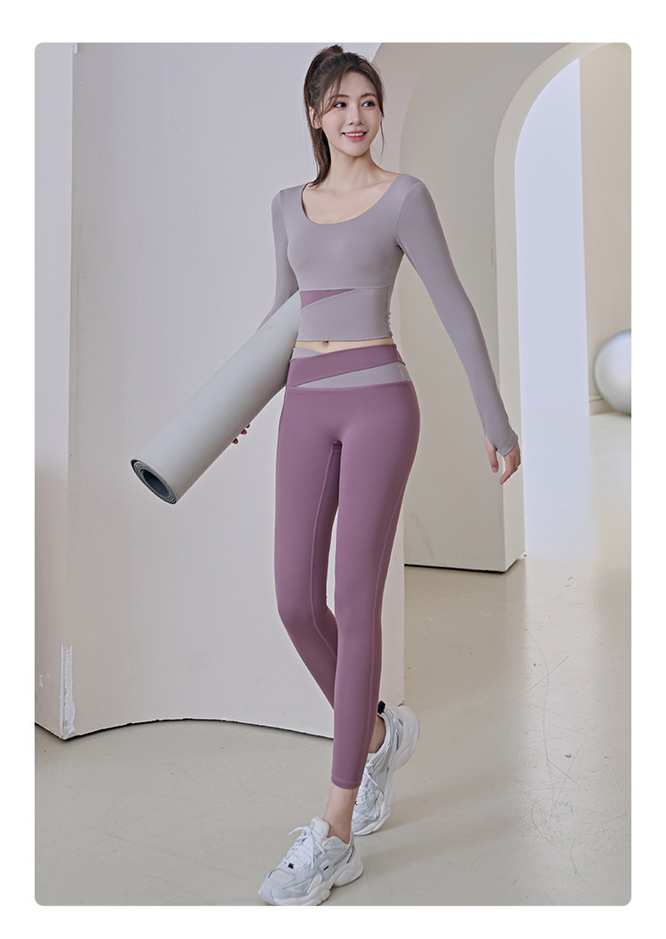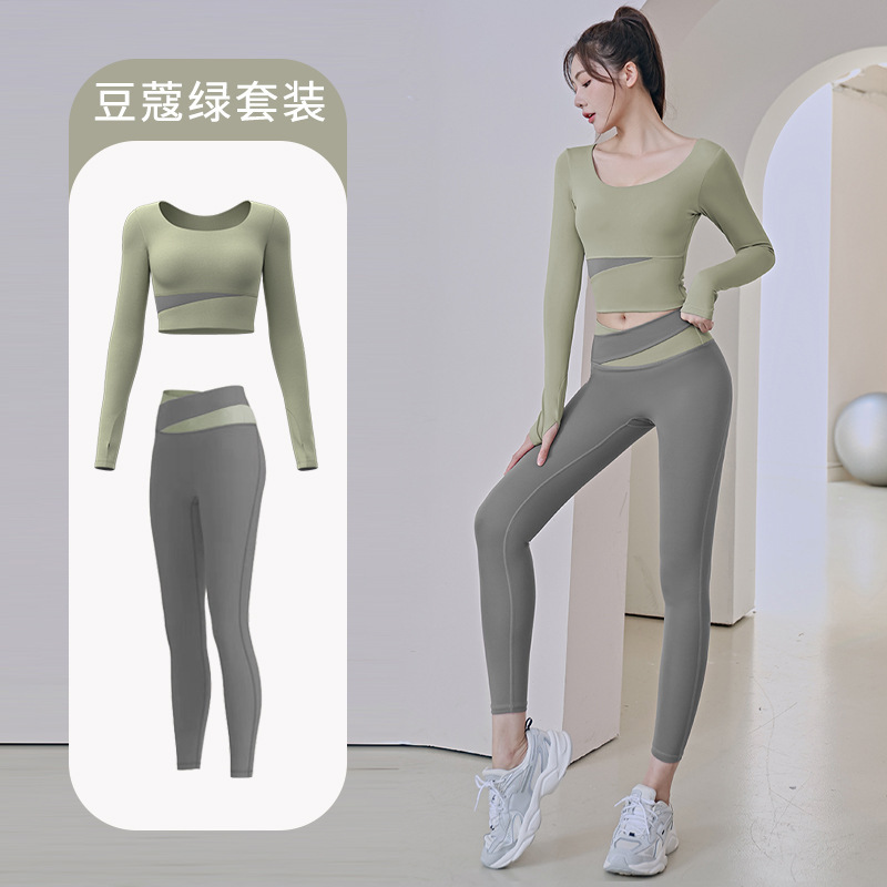 Juyitang 컬러 매칭 롱 요가 세트 원활한 알몸 피트니스 세트 원활한 슬리밍 스포츠 세트 여성