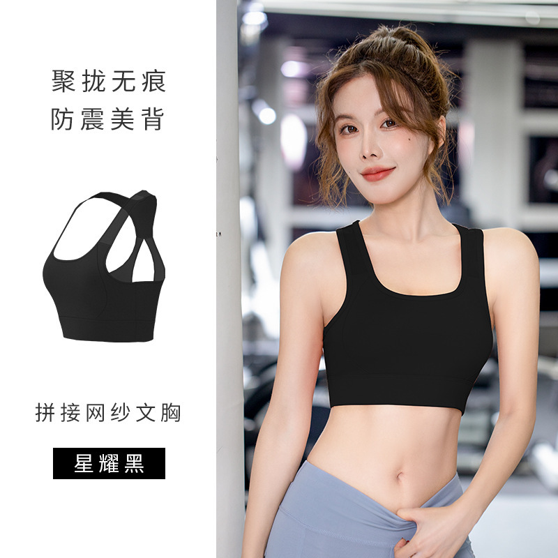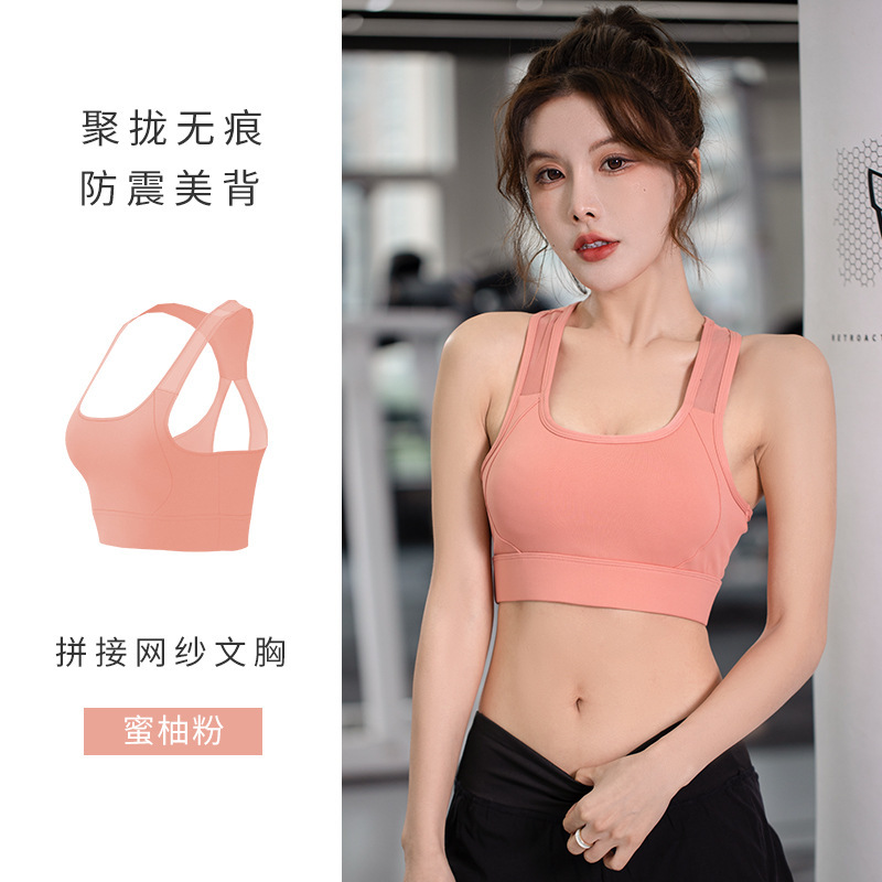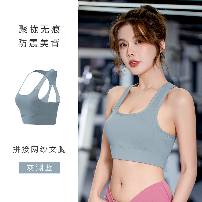 Juyitang 스포츠 속옷 여성 충격 방지 러닝 메쉬 아름다운 백 패션 와이드 숄더 브라 유럽과 미국의 푸시 업 브라