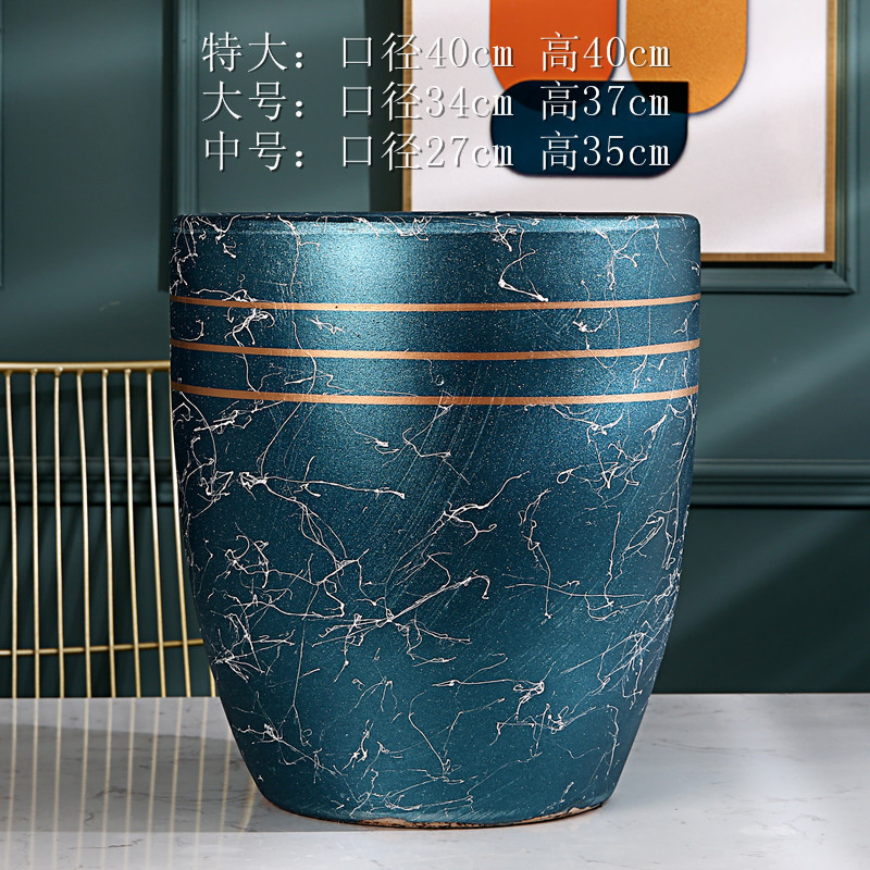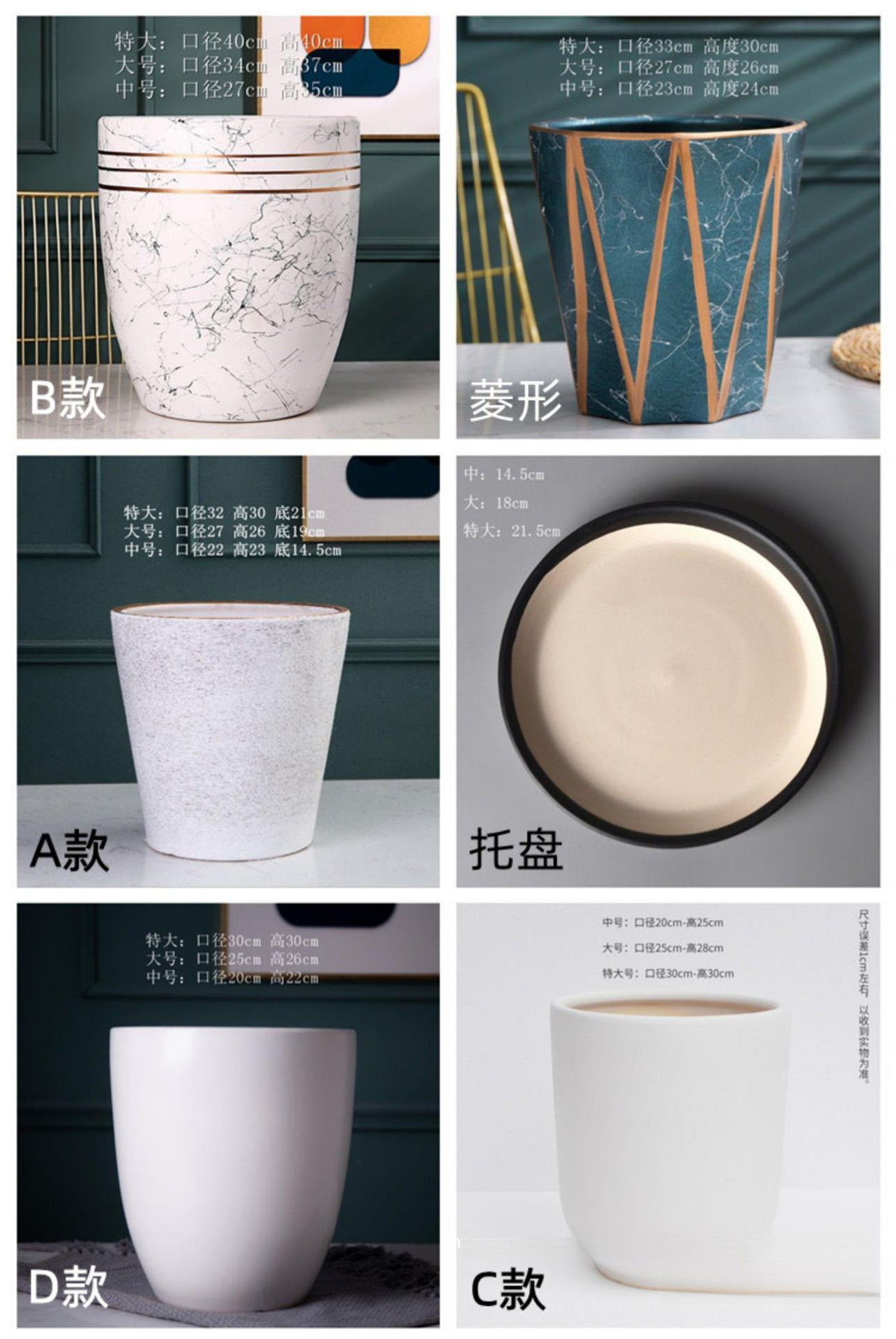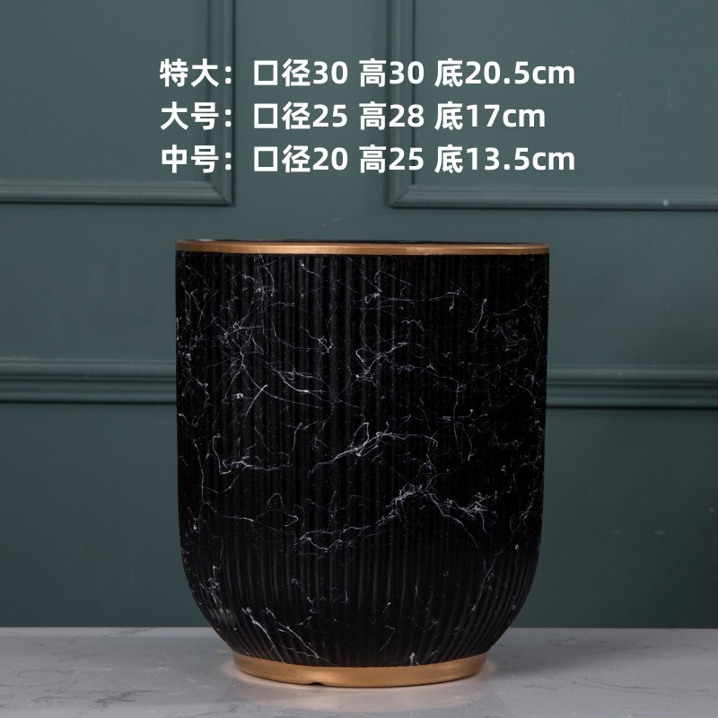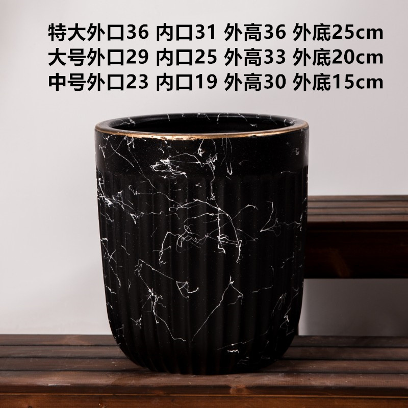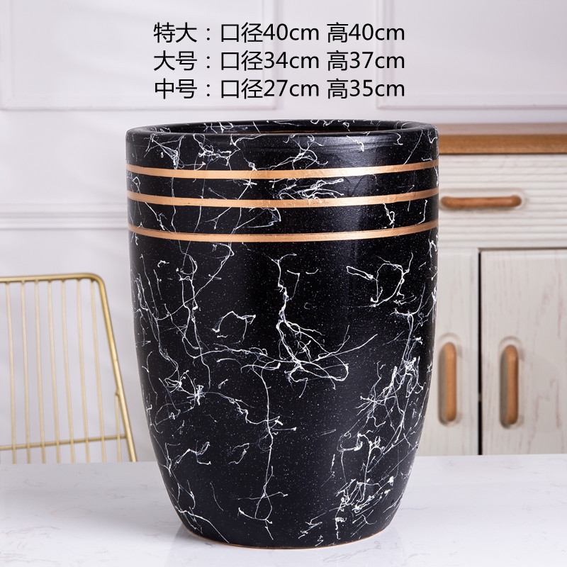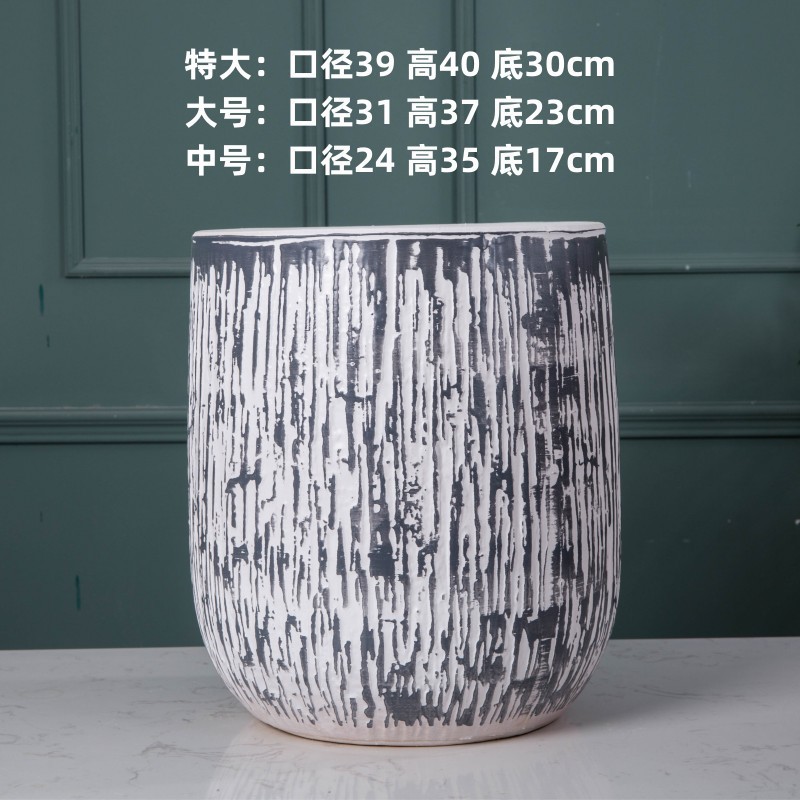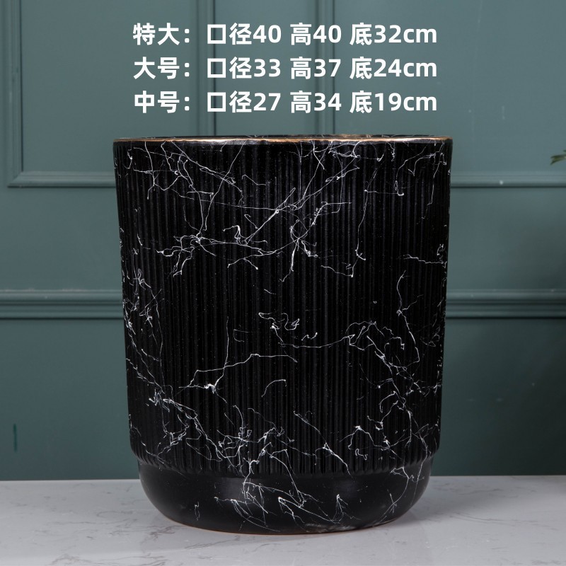 Jingdezhen 초대형 흑백 세라믹 화분 간단한 발코니 실내 지상 심기 포춘 트리 녹색 식물 화분