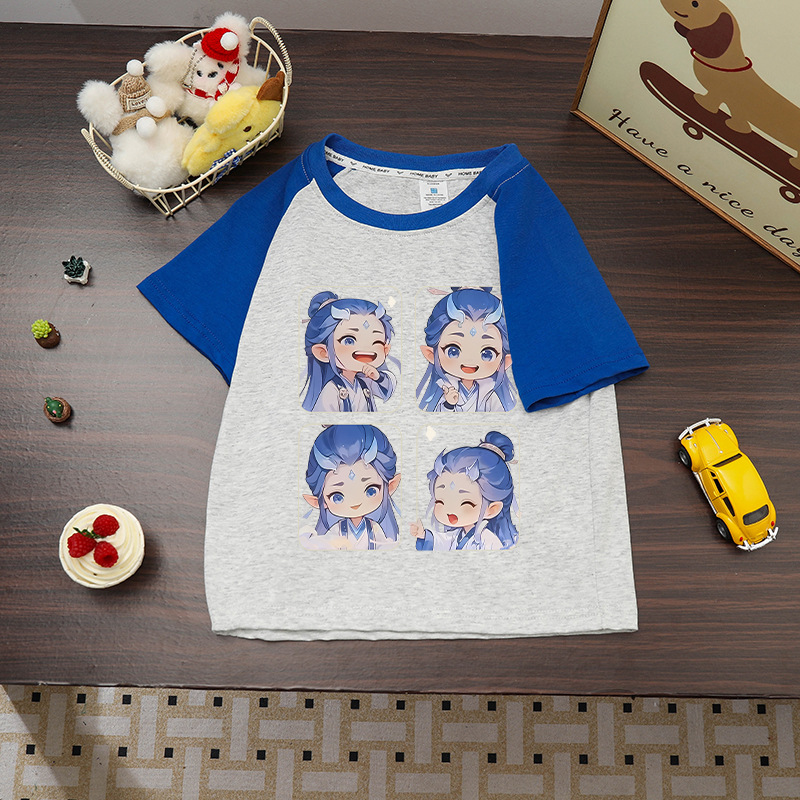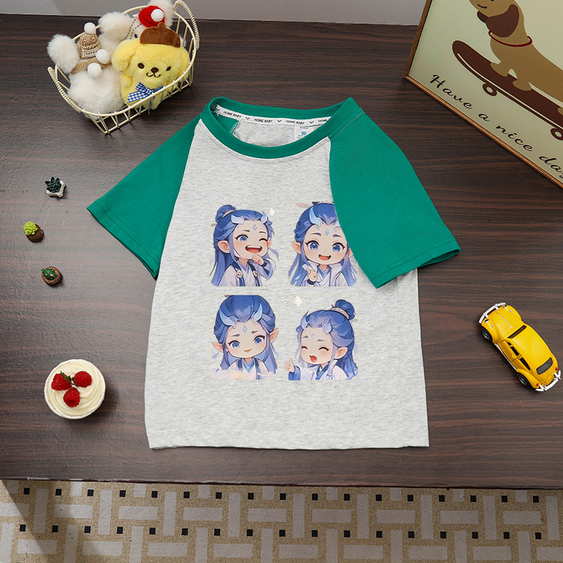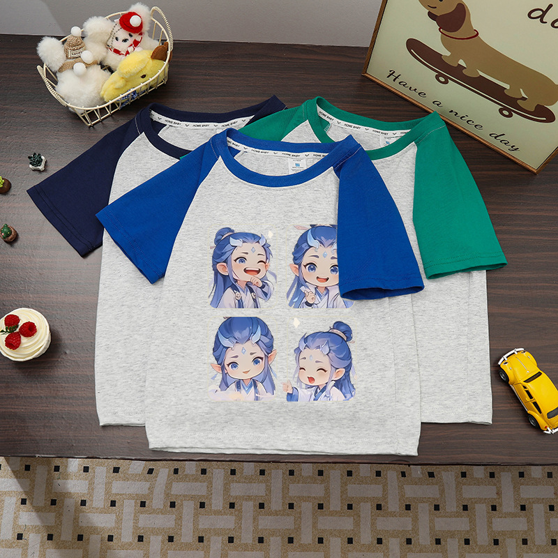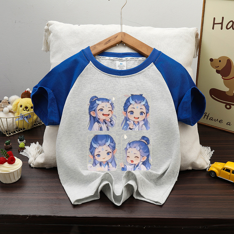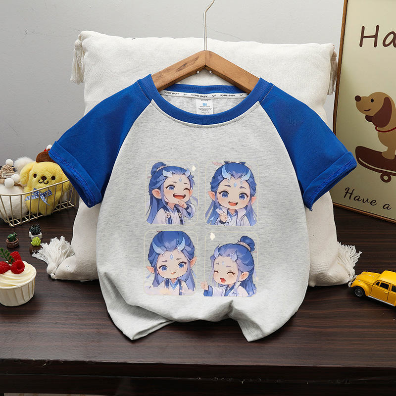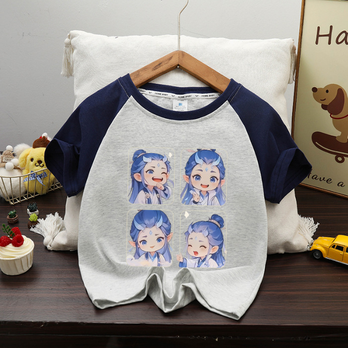 Nezha 인쇄 캐주얼 탑 소년 어린이 2025 여름 새 소년 트렌디 한 대비 컬러 티셔츠 짧은 소매스토어 가기