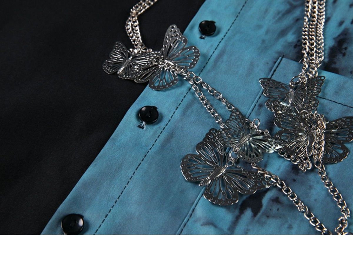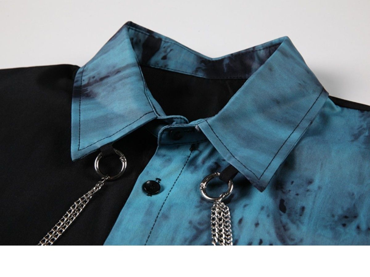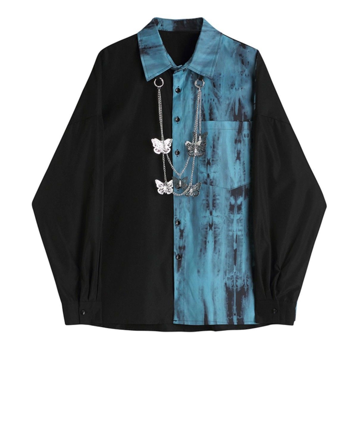 플러스 사이즈 300 진 콘트라스트 컬러 체인 긴 소매 셔츠 패션 브랜드 문학 스타일 봄과 가을 느슨한 캐주얼 카디건 패션스토어 가기