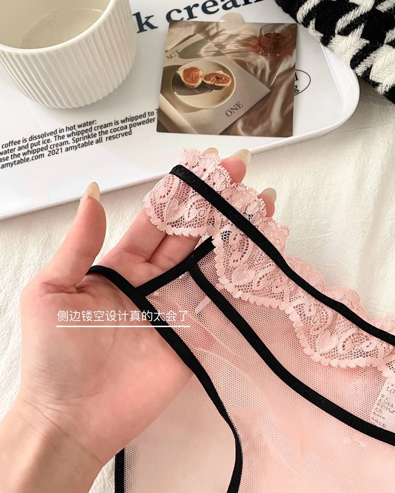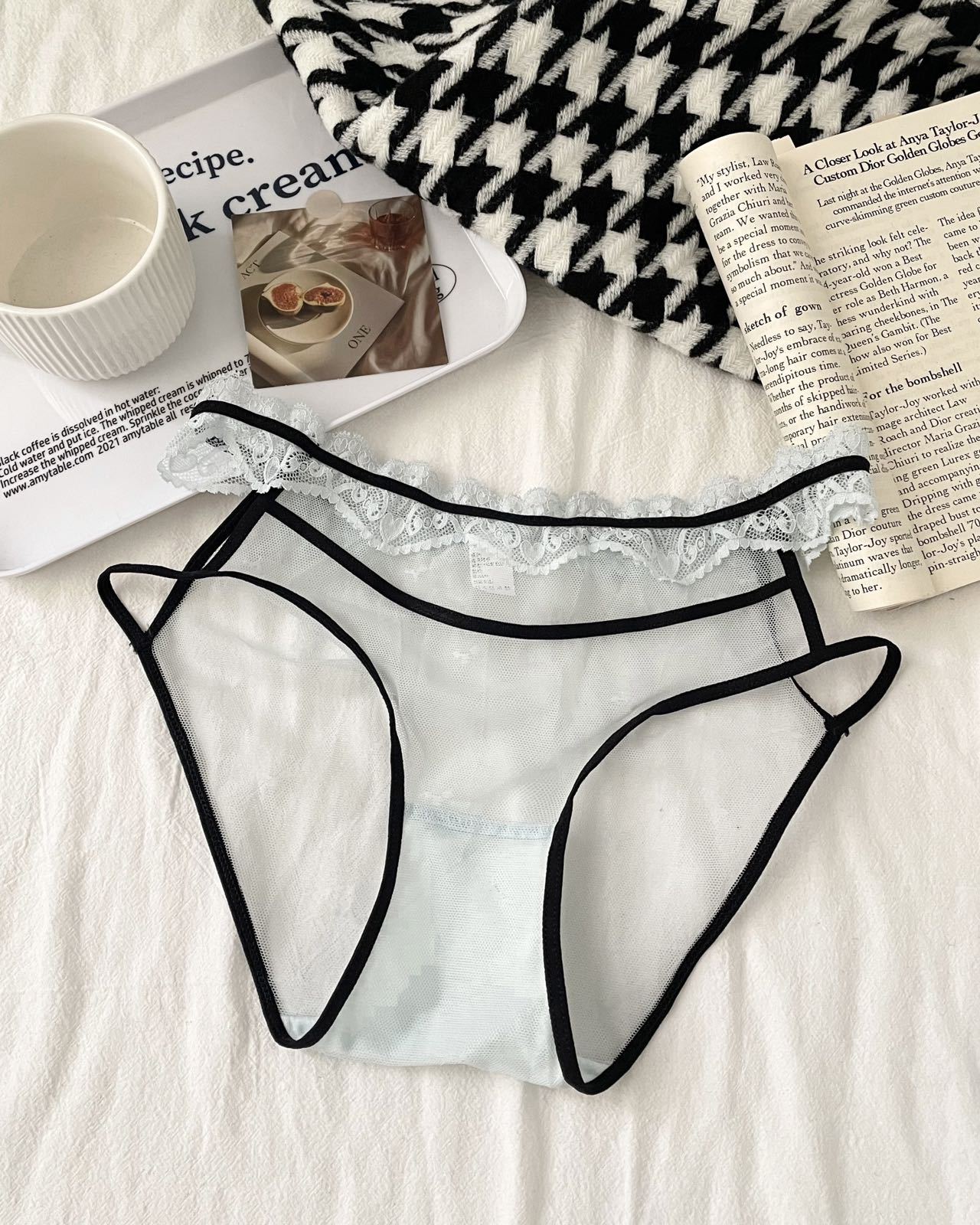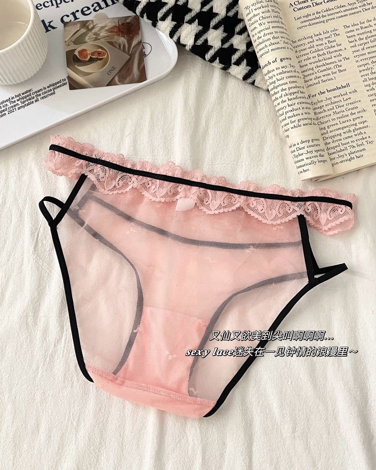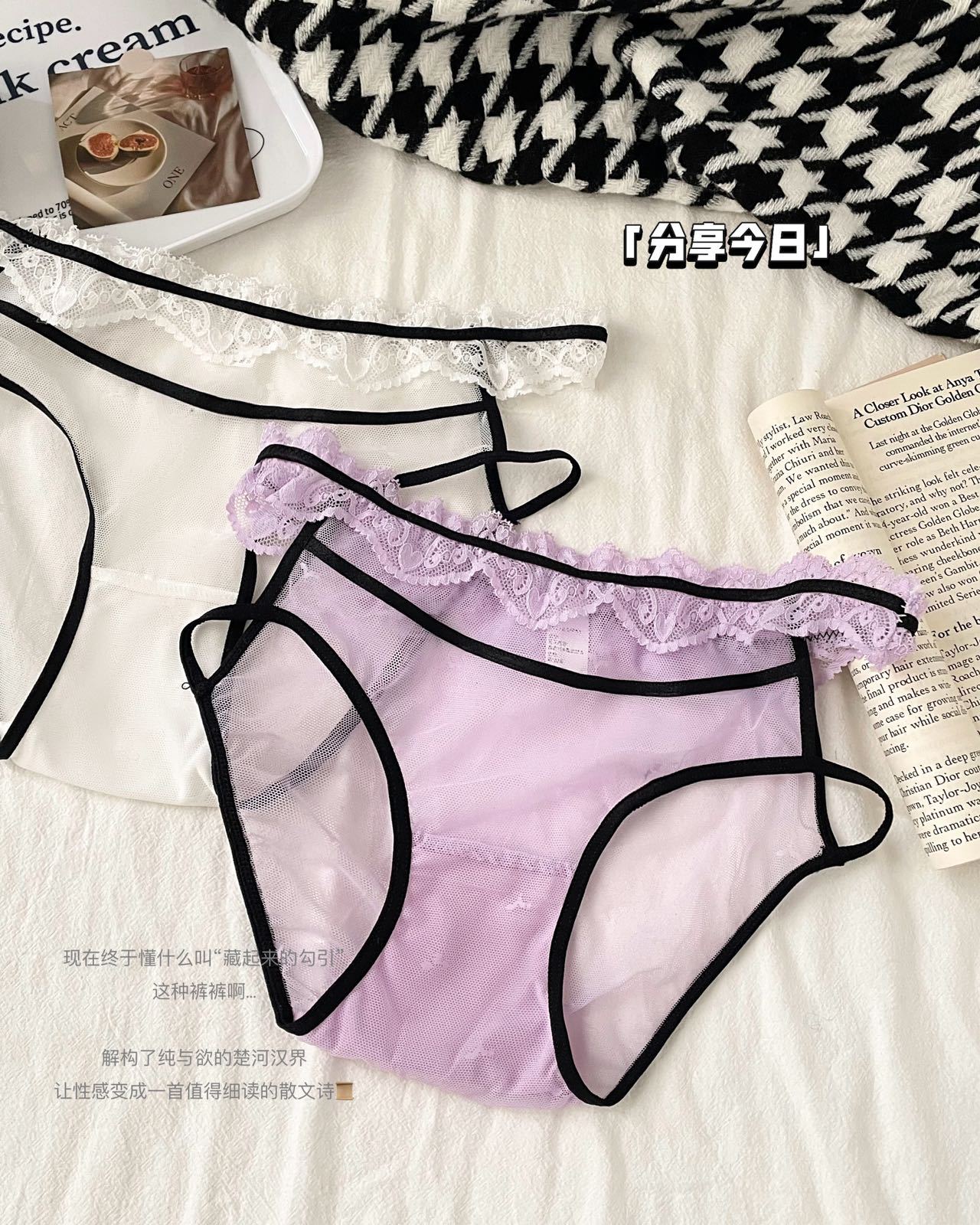 프랑스 레이스 메쉬 섹시한 소녀의 속옷 순수 여성을위한 새로운 코튼 크로트 통기성 낮은 허리 얇은 벨트 브리프