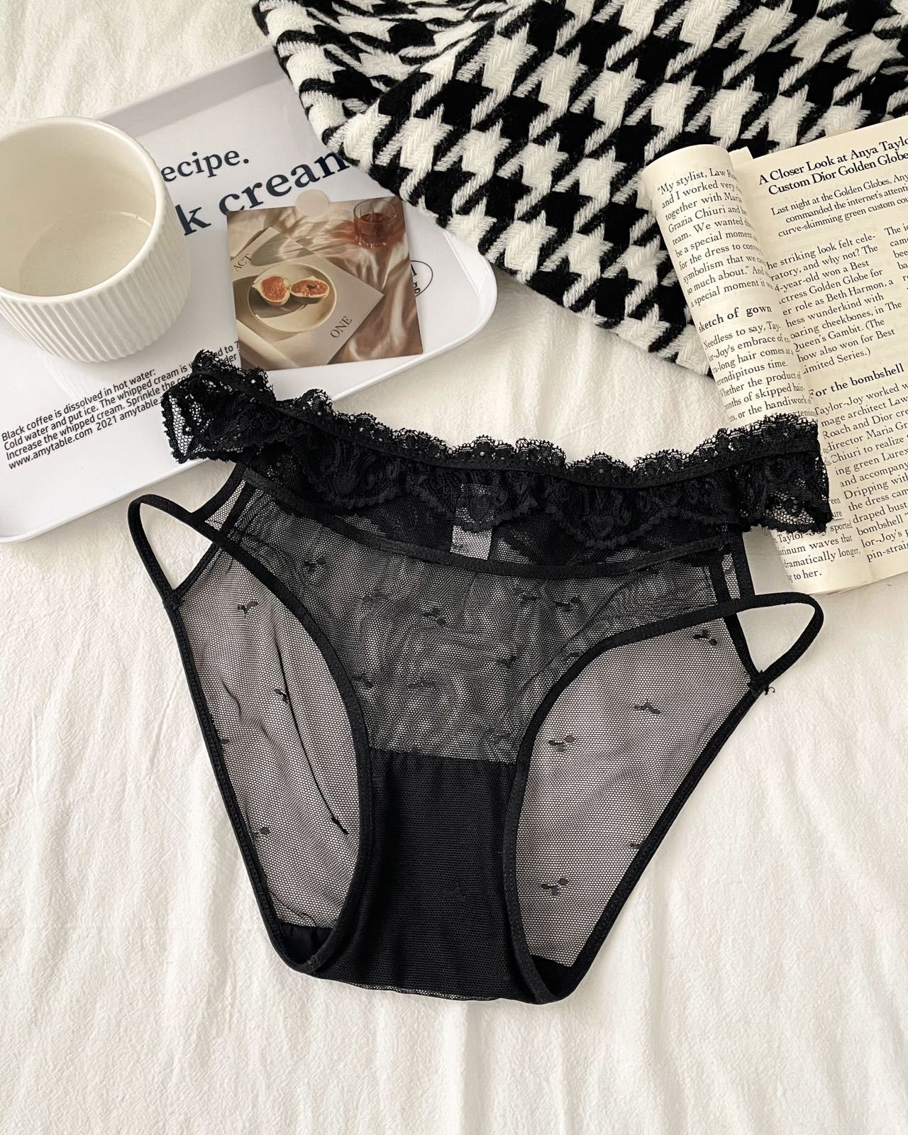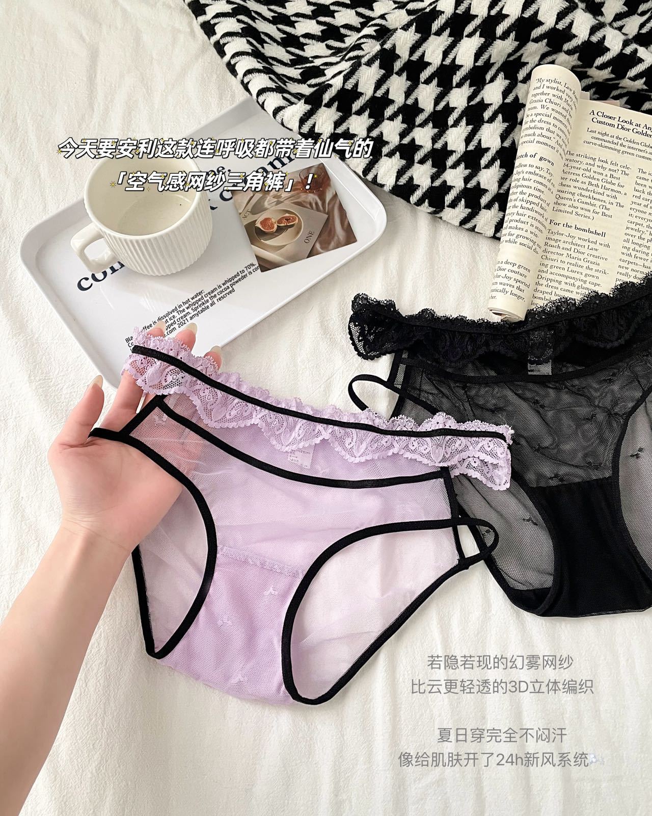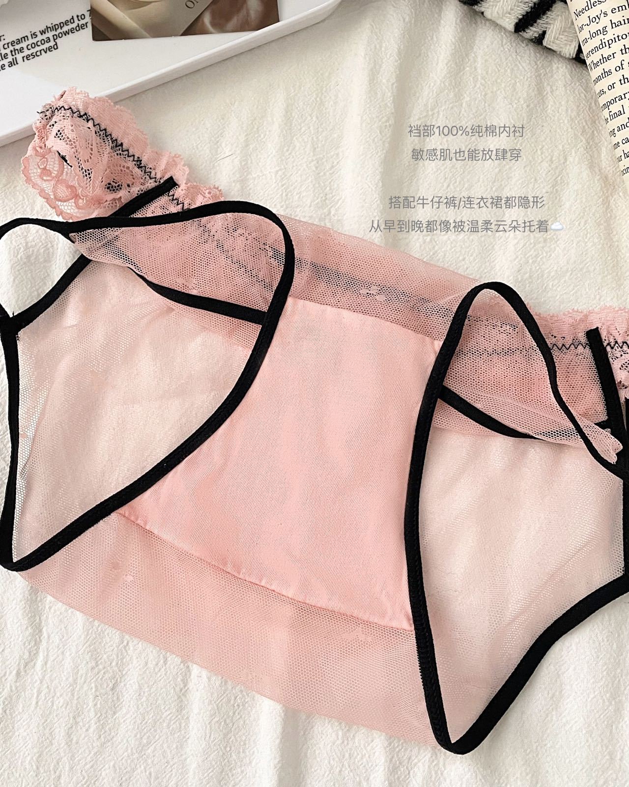 프랑스 레이스 메쉬 섹시한 소녀의 속옷 순수 여성을위한 새로운 코튼 크로트 통기성 낮은 허리 얇은 벨트 브리프
