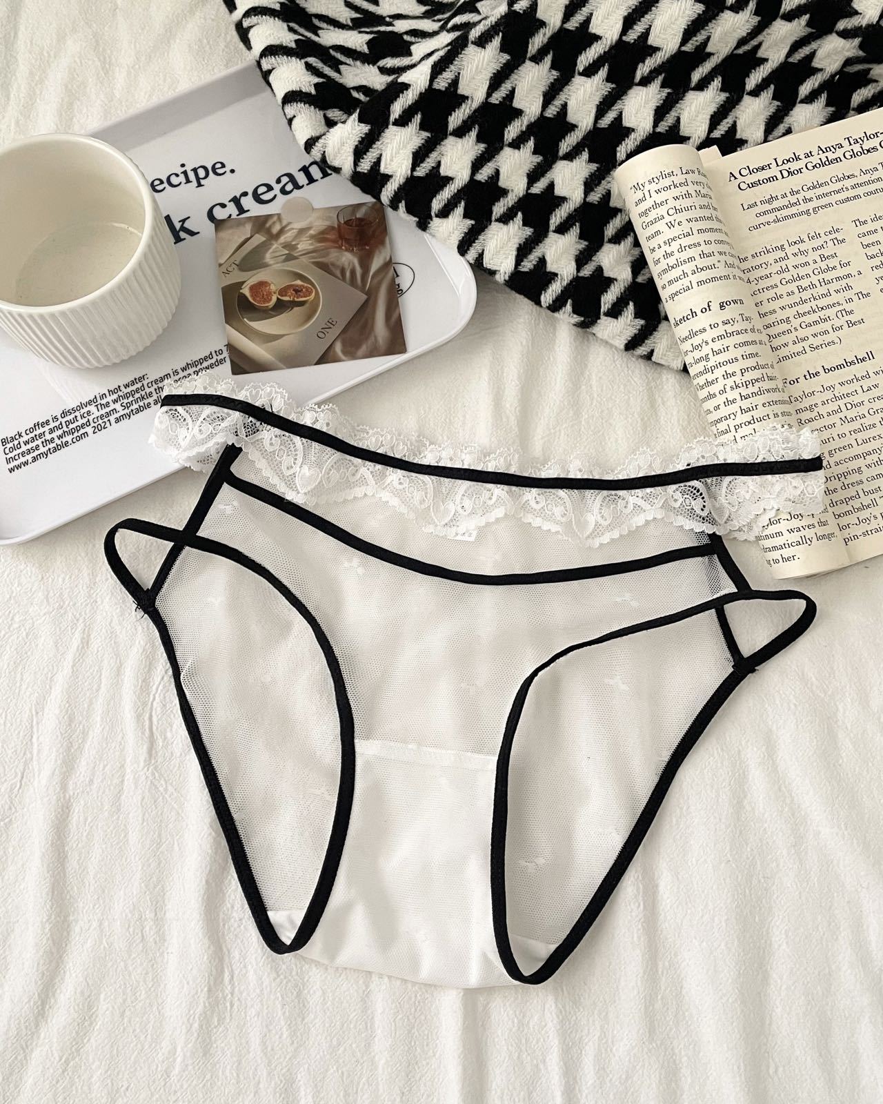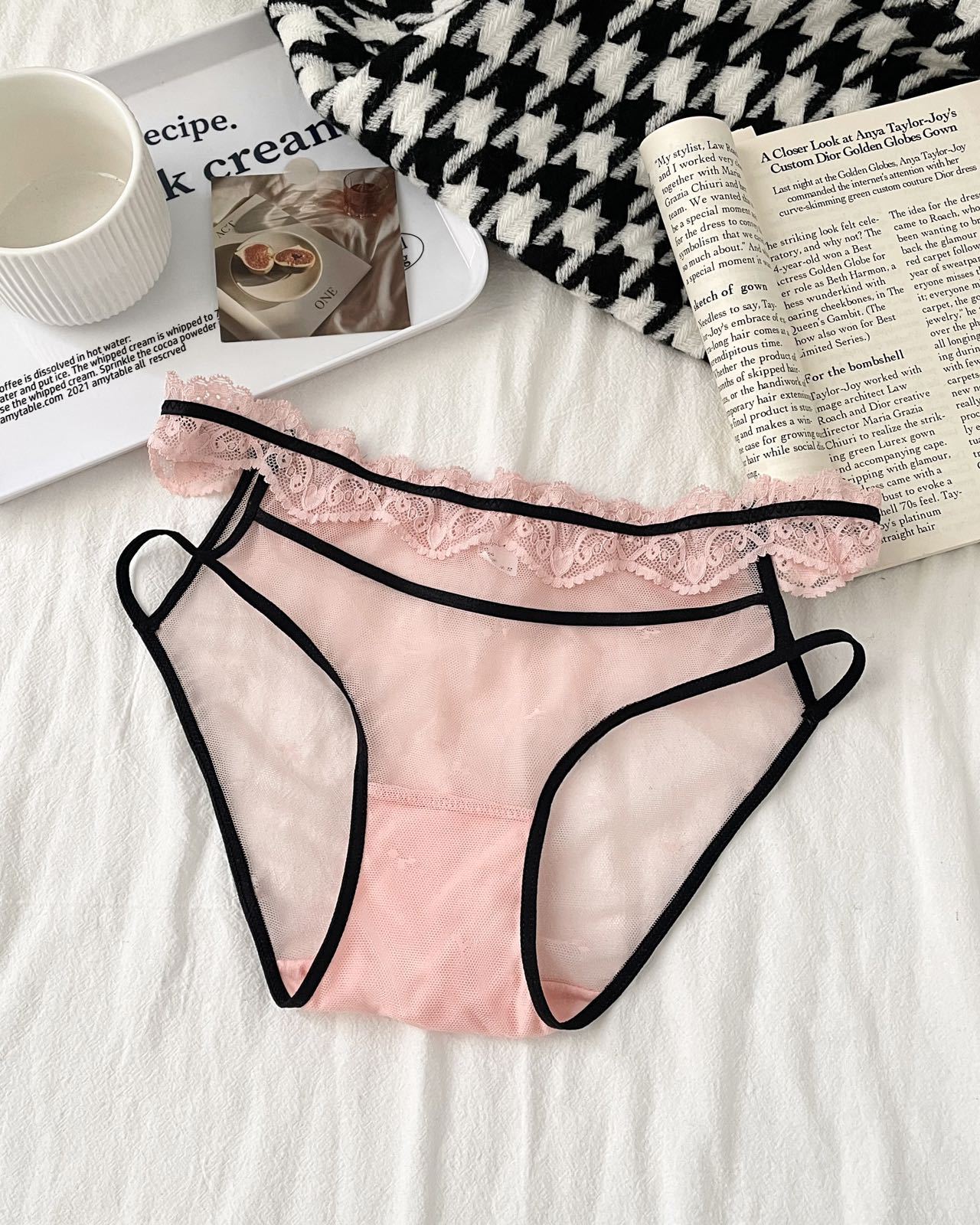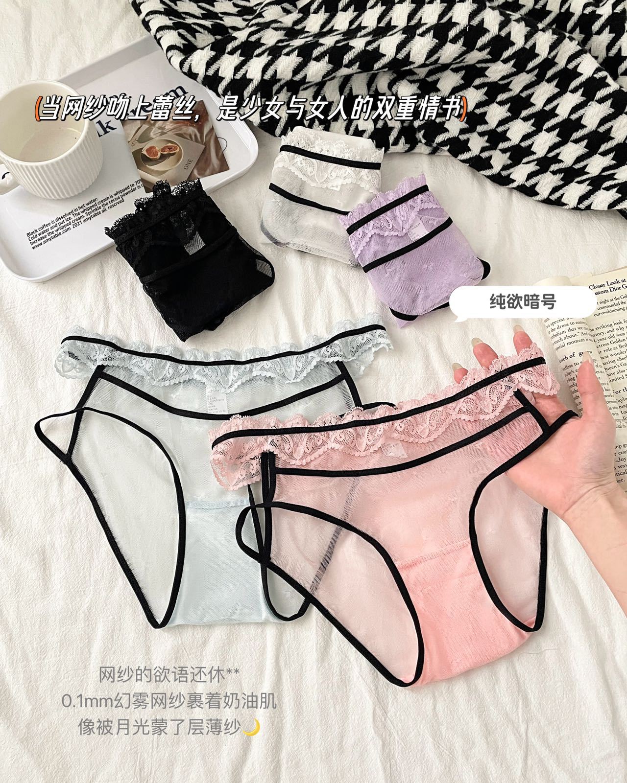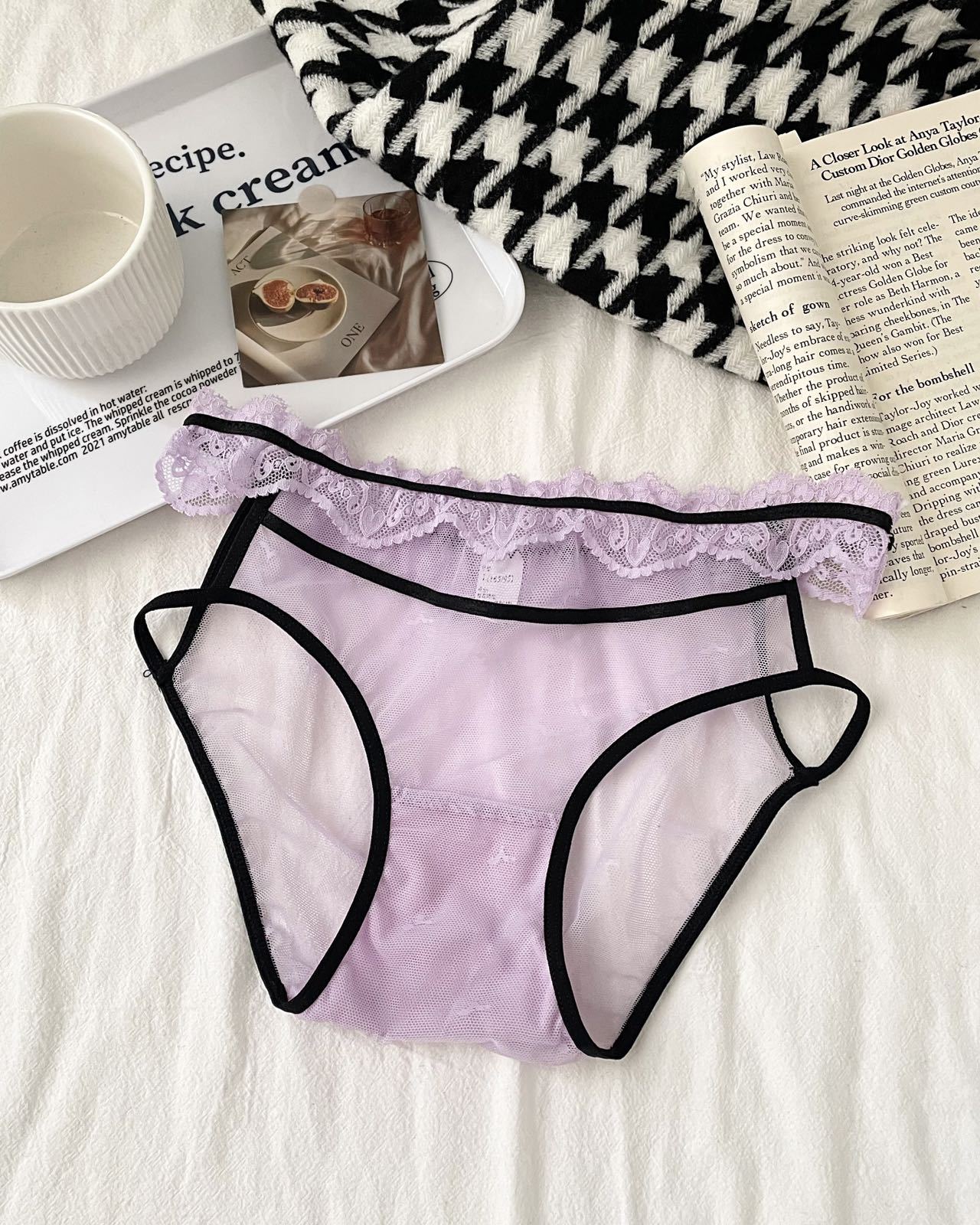 프랑스 레이스 메쉬 섹시한 소녀의 속옷 순수 여성을위한 새로운 코튼 크로트 통기성 낮은 허리 얇은 벨트 브리프