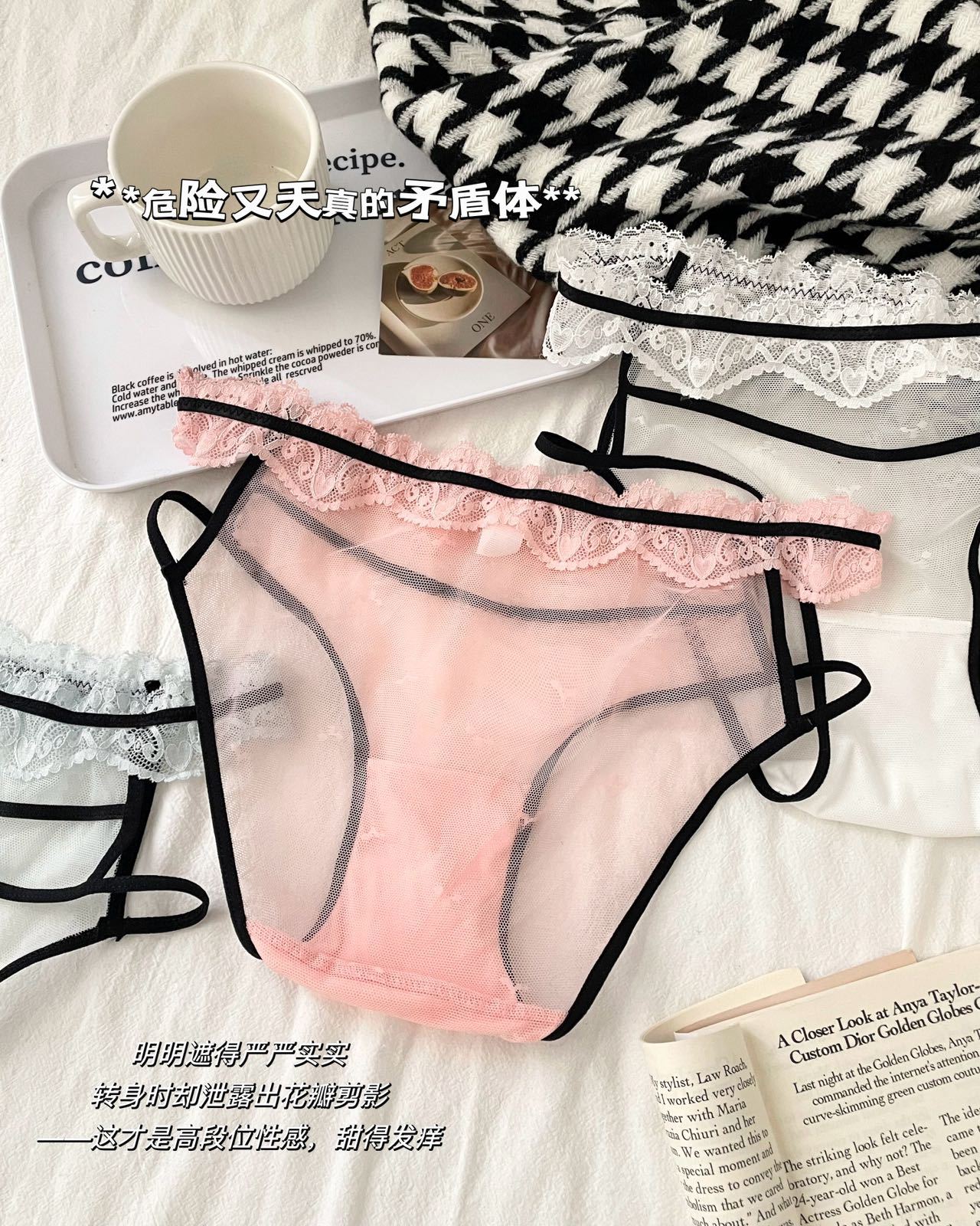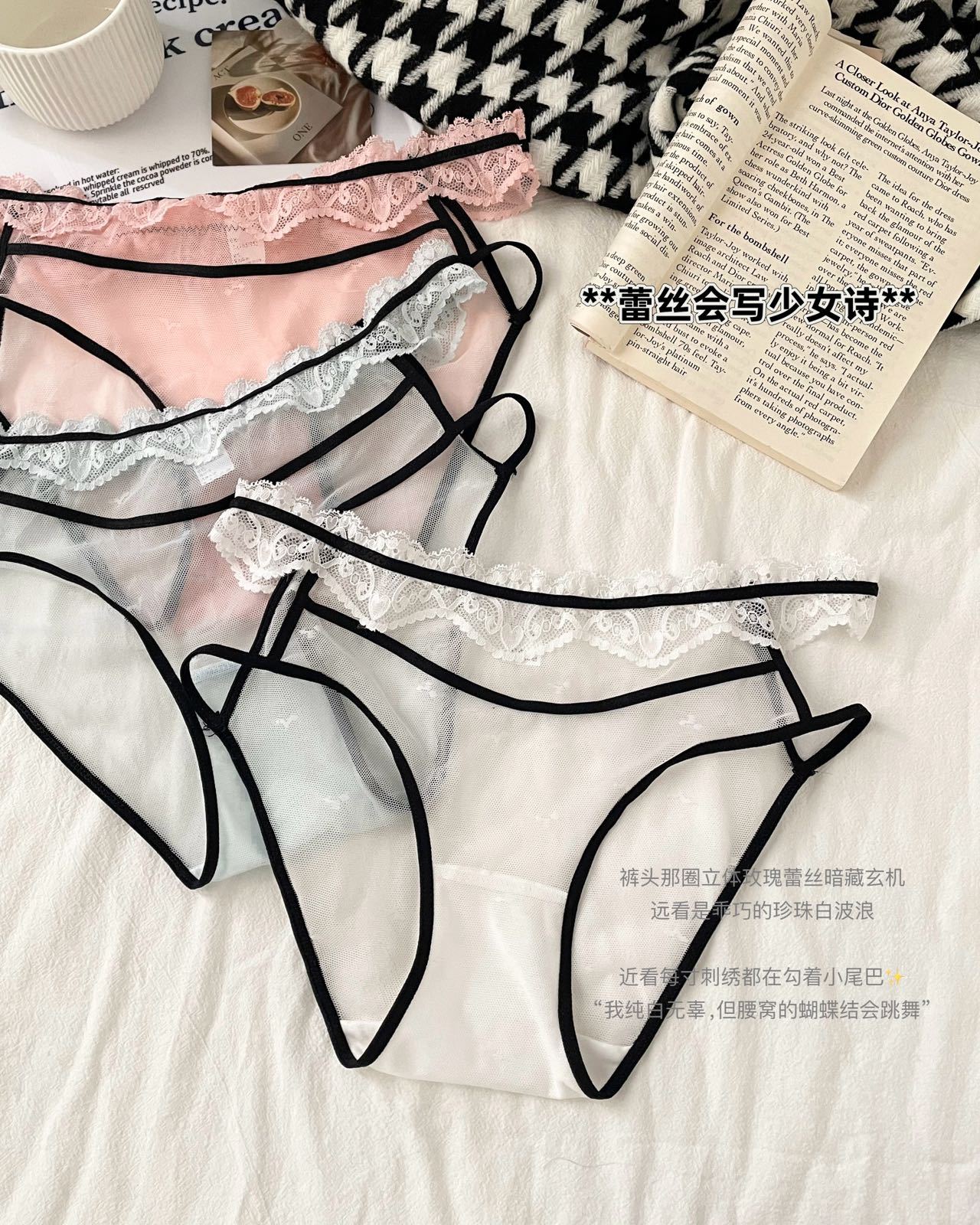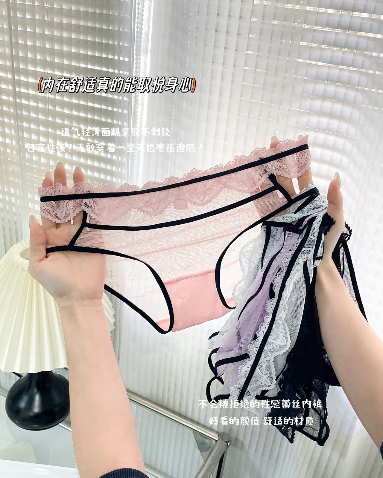 프랑스 레이스 메쉬 섹시한 소녀의 속옷 순수 여성을위한 새로운 코튼 크로트 통기성 낮은 허리 얇은 벨트 브리프스토어 가기