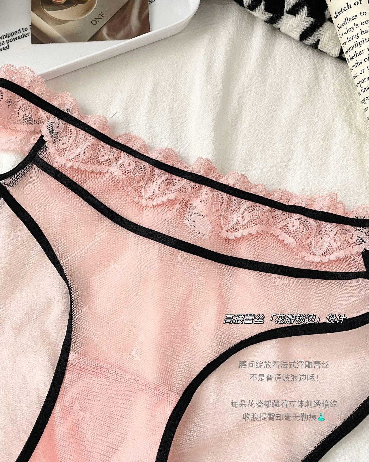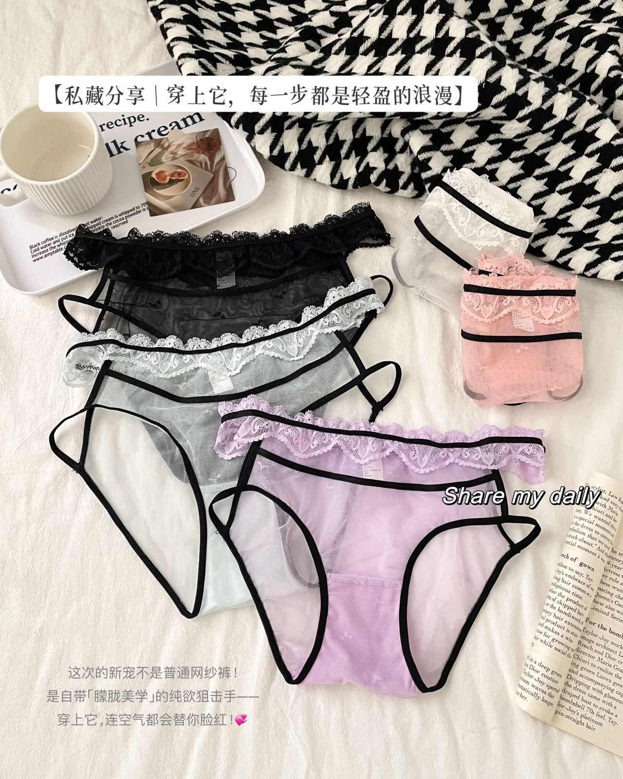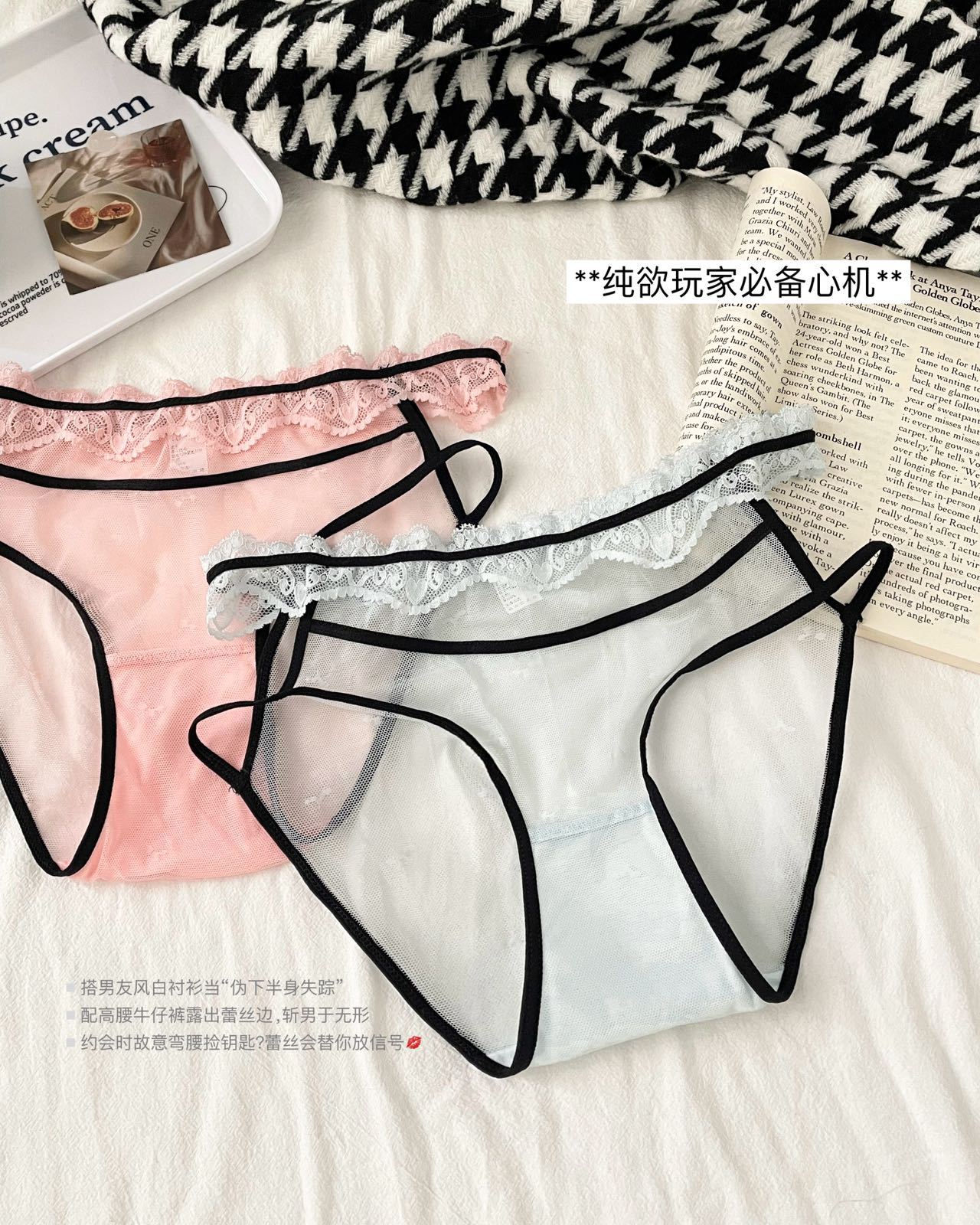 프랑스 레이스 메쉬 섹시한 소녀의 속옷 순수 여성을위한 새로운 코튼 크로트 통기성 낮은 허리 얇은 벨트 브리프스토어 가기