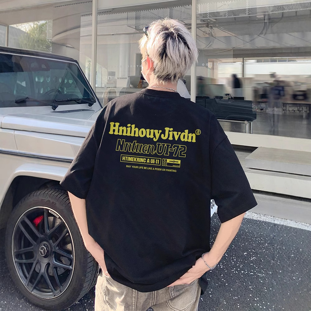 아메리칸 스타일 트렌디 브랜드 반팔 티셔츠 남성용 여름 2025 새로운면 인쇄 편지 하이 스트리트 루즈 캐주얼 반소매