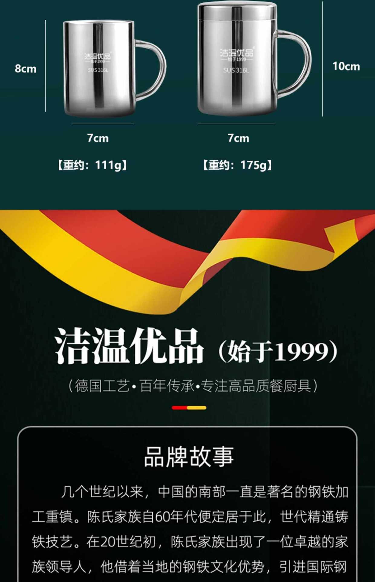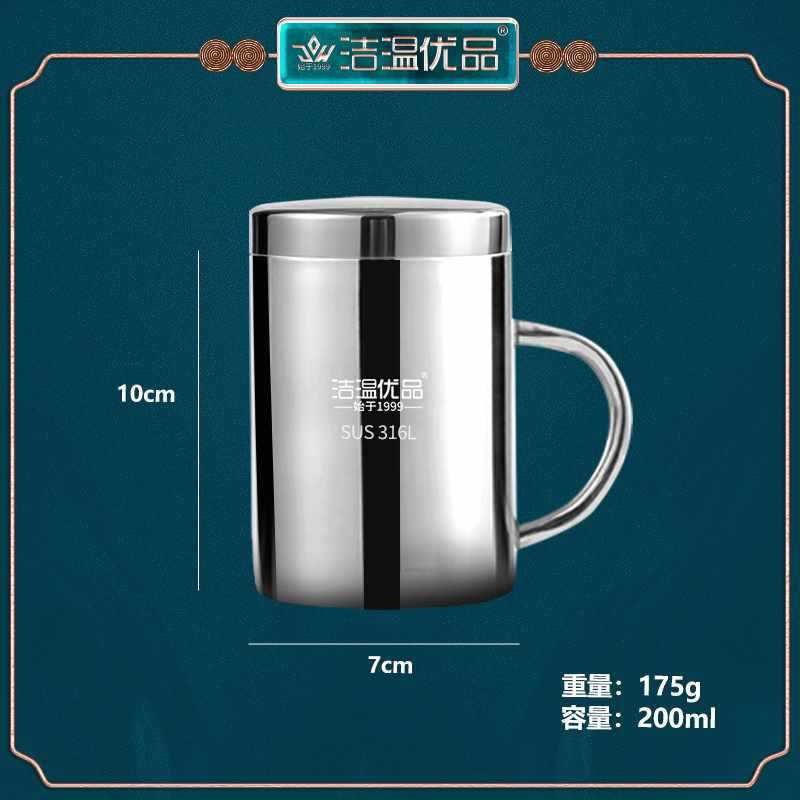 • 316 스테인리스 물컵 200ml [이중화상방지+뚜껑]★♢