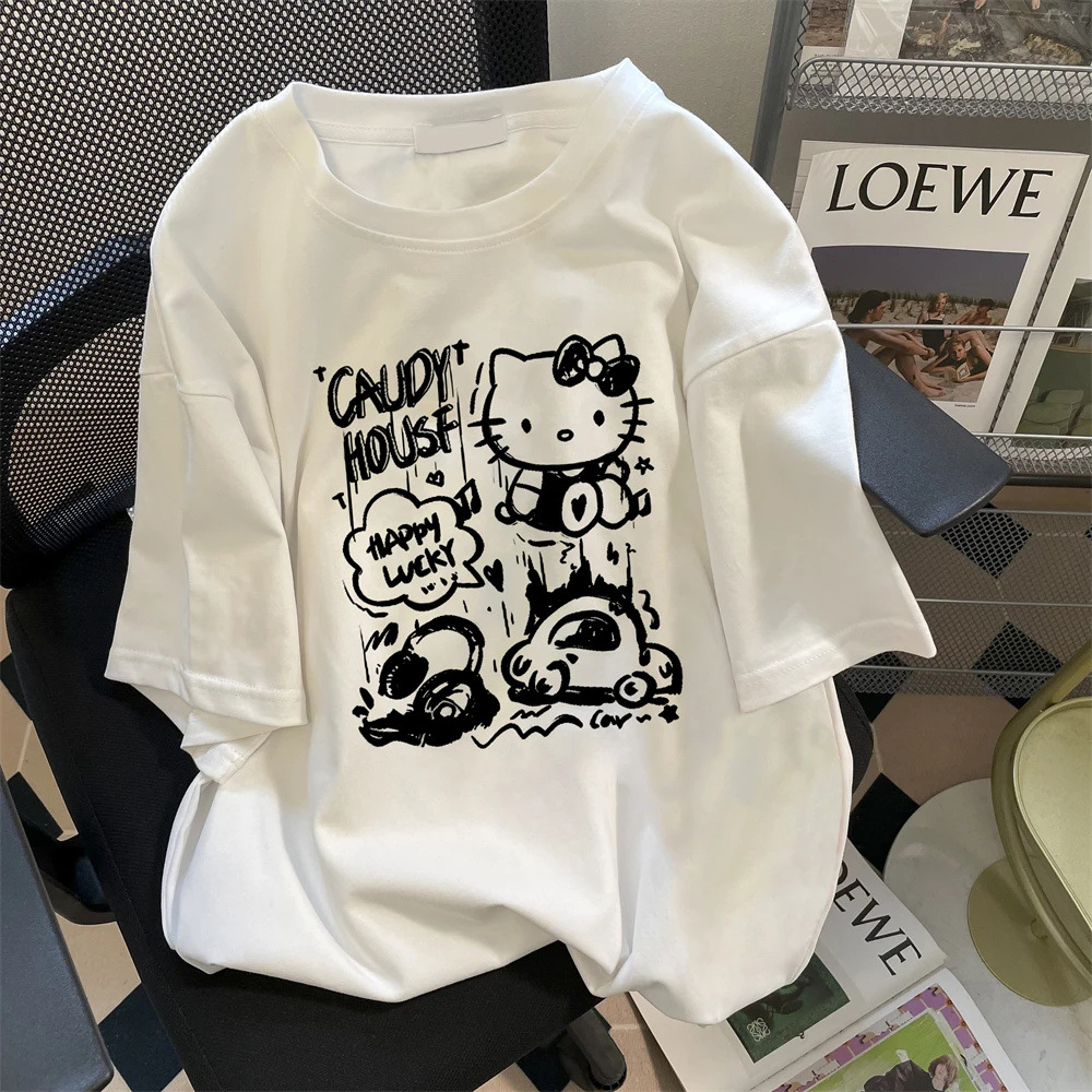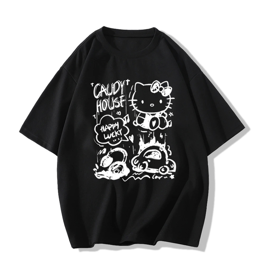 국경 간 대외 무역 자폐증 자동차 헤드셋 kt 고양이 인쇄 그림 티셔츠 패션 힙합 반팔 티셔츠 면 티셔츠 거리스토어 가기