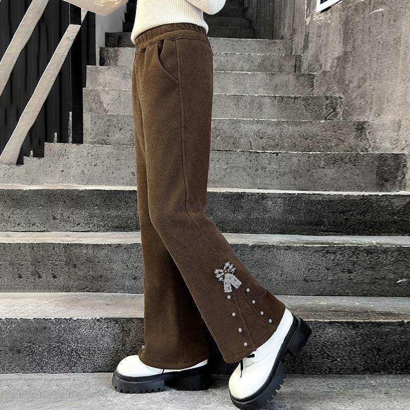 소녀의 뿔 바지 가을과 겨울 새로운 대형 어린이 서양식 원피스 기모 두꺼운 캐주얼 코듀로이스토어 가기