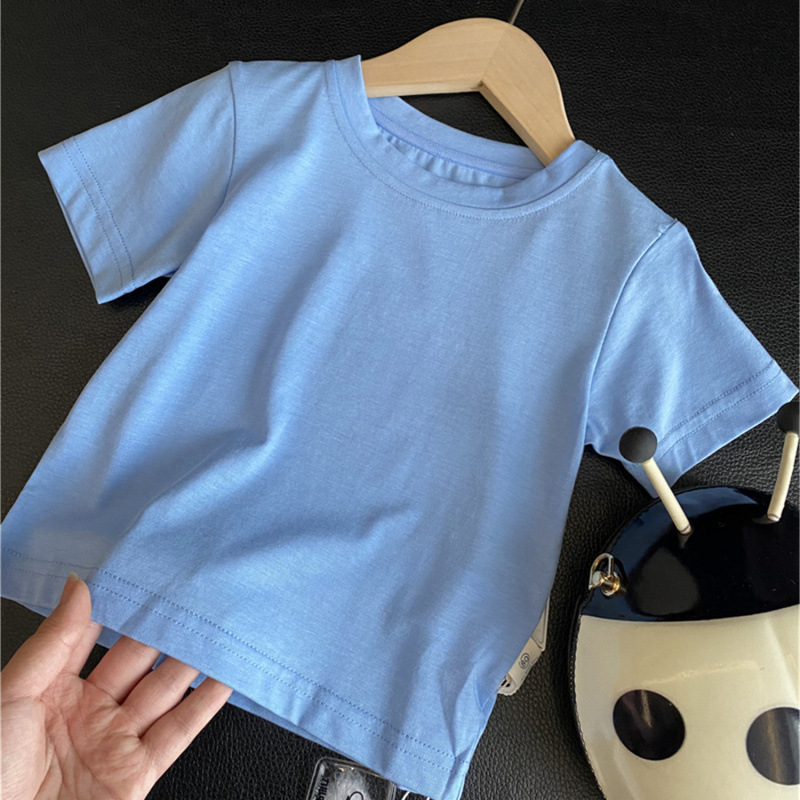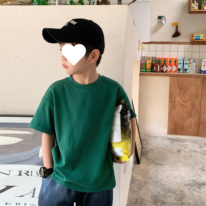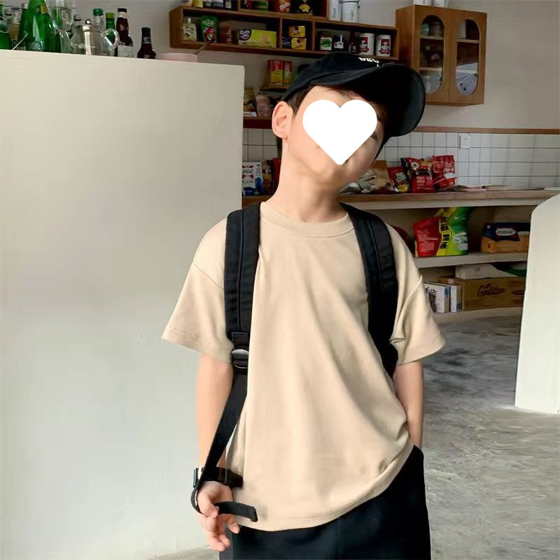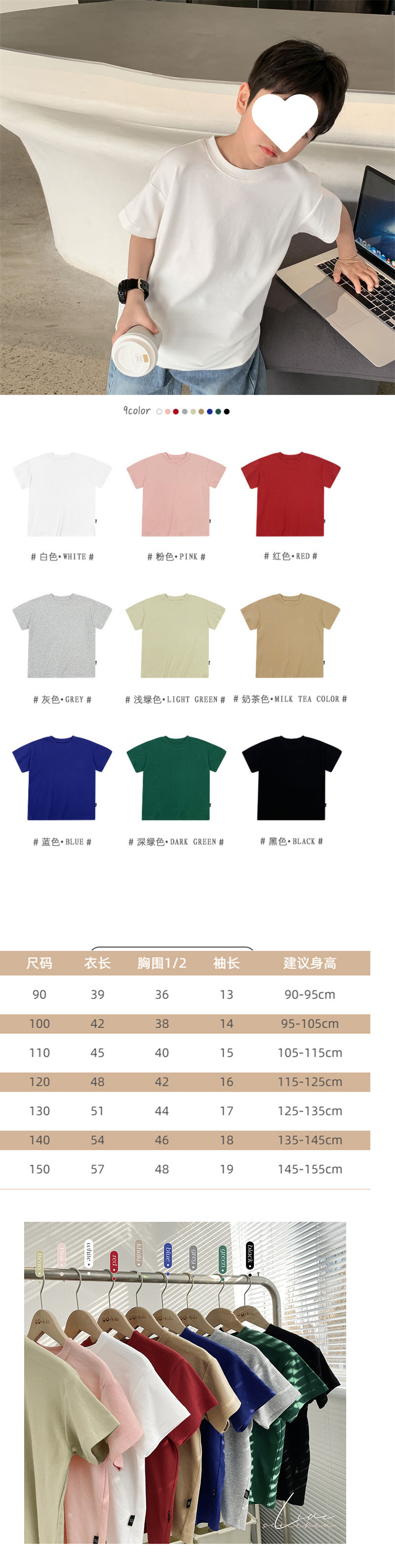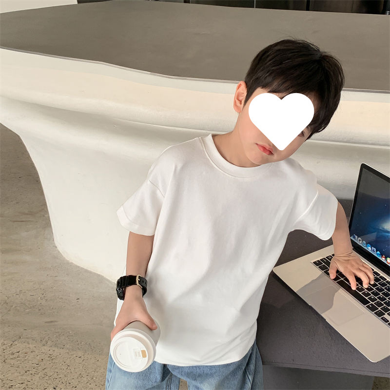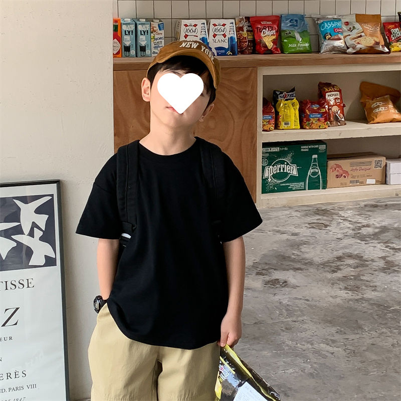 어린이 단색 흑백 여름 느슨한 반팔 티셔츠 순면 유치원 소년과 소녀 단색 활동 탑 하프 슬리브