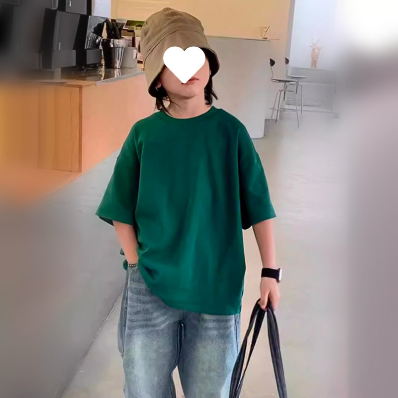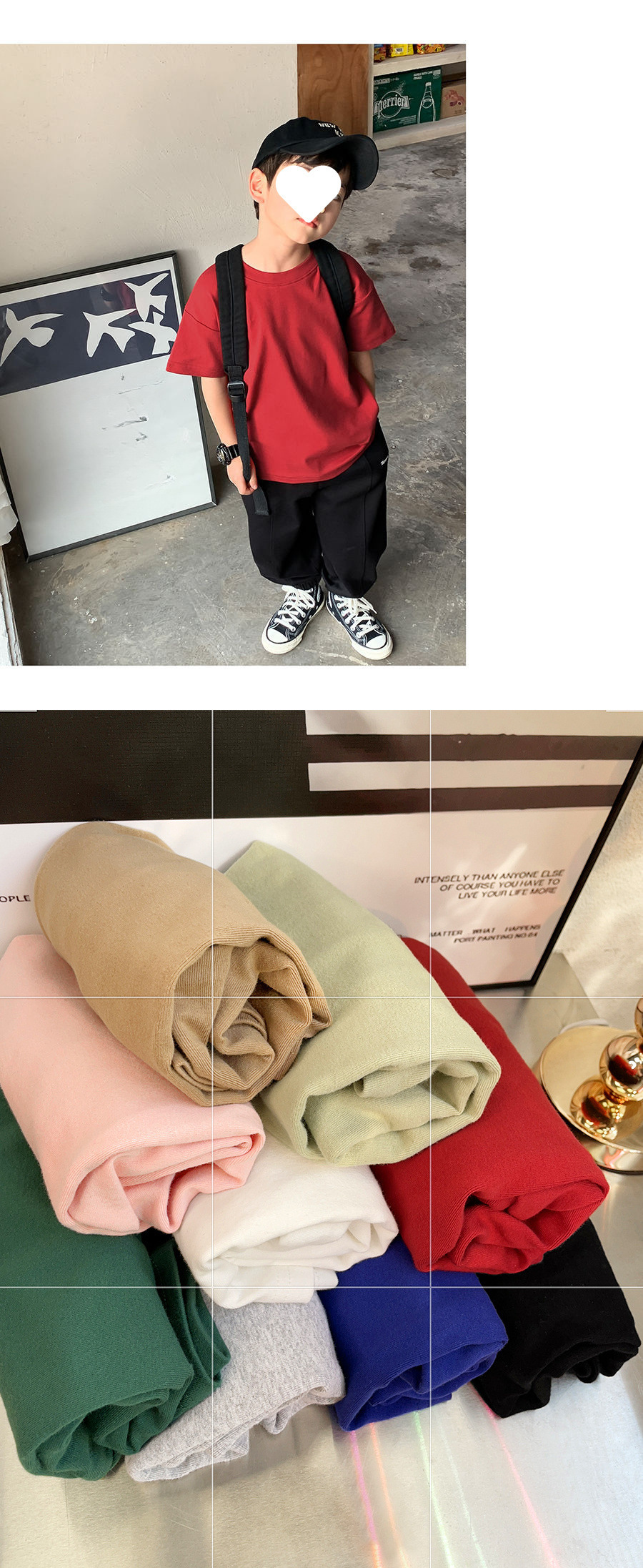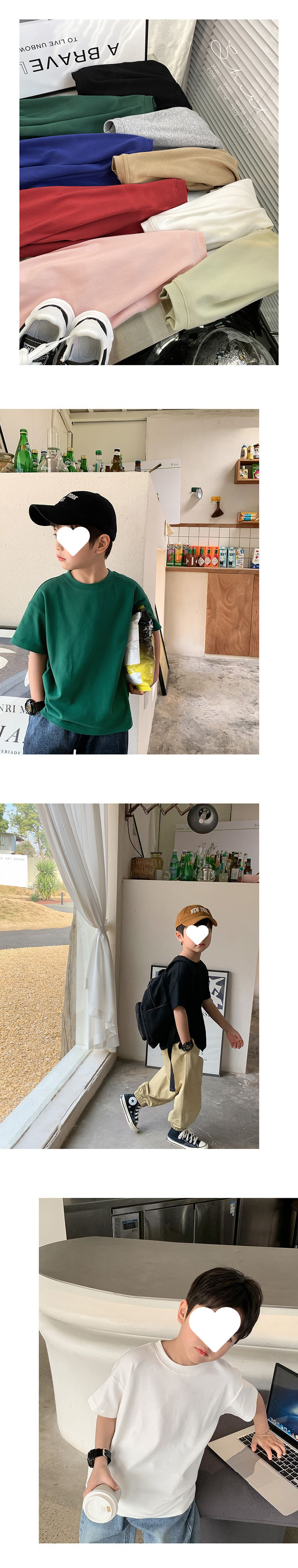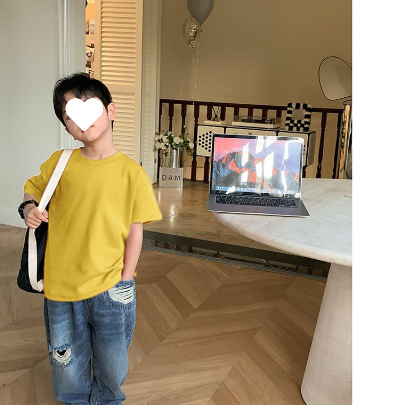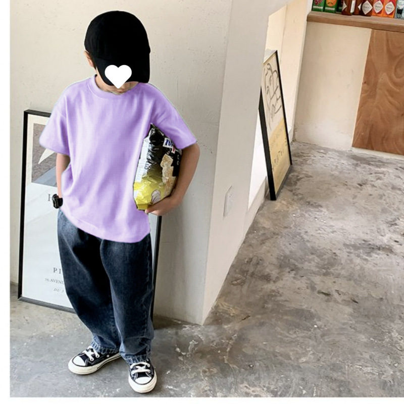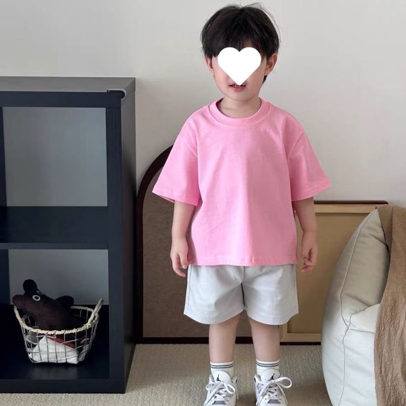 어린이 단색 흑백 여름 느슨한 반팔 티셔츠 순면 유치원 소년과 소녀 단색 활동 탑 하프 슬리브