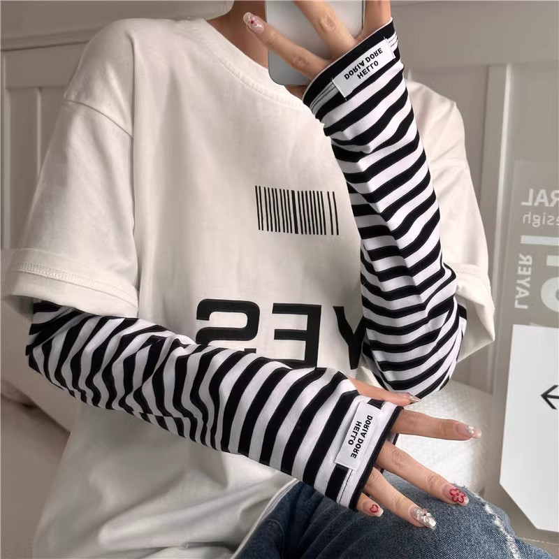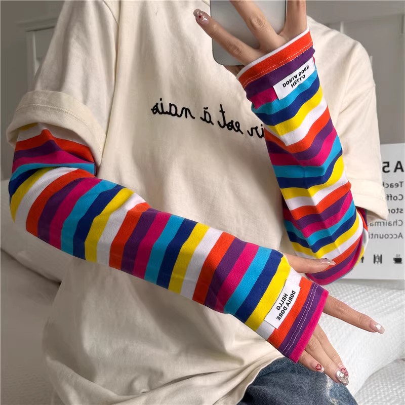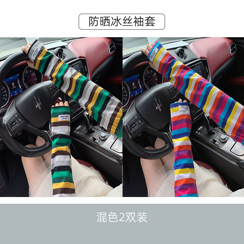 느슨한 차양 푸른 태양 보호 소매 여름 운전 스트라이프 UV 보호 스트라이프 얼음 소매 2025 새로운스토어 가기