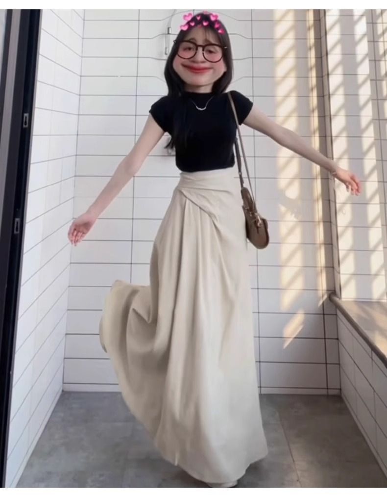 여성 치마 봄과 여름 2025 새로운 슬림 A 라인 긴 치마 작은 대형 스윙 치마 긴 파손스토어 가기
