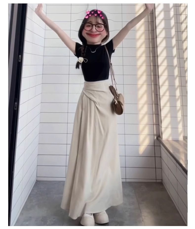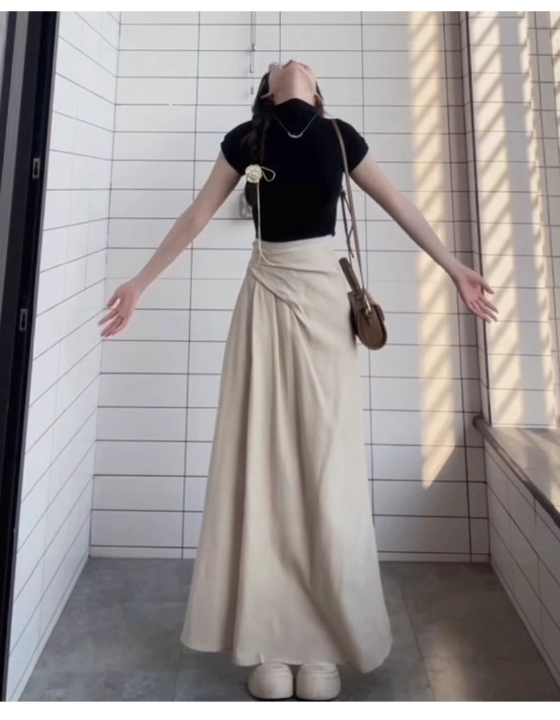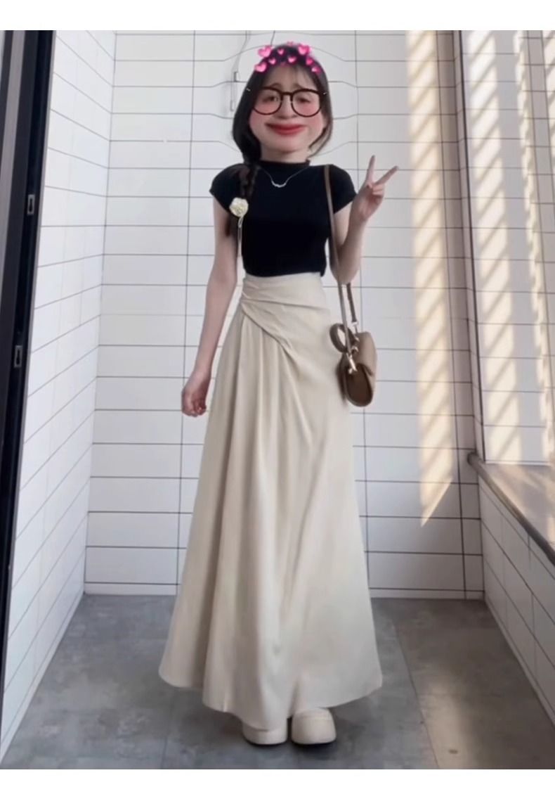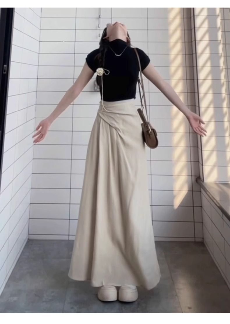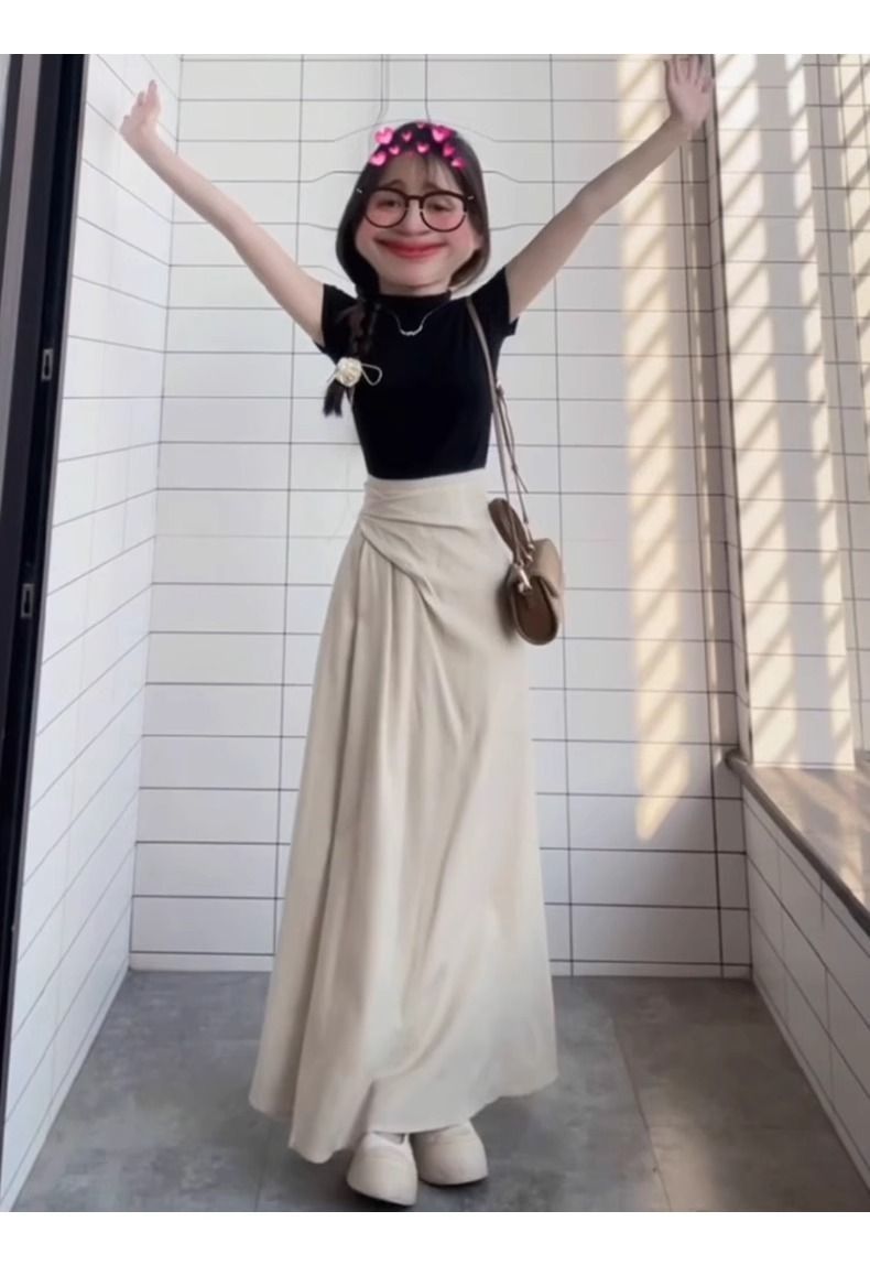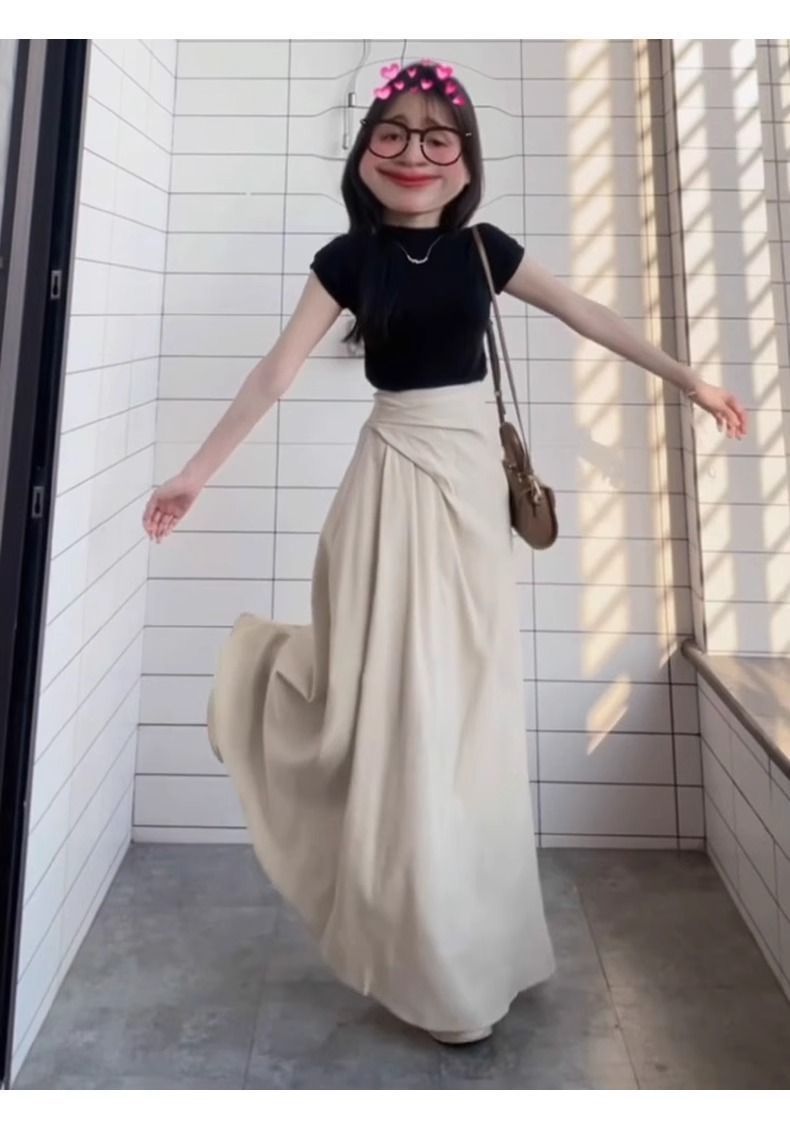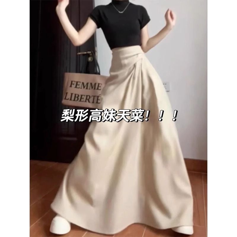 여성 치마 봄과 여름 2025 새로운 슬림 A 라인 긴 치마 작은 대형 스윙 치마 긴 파손