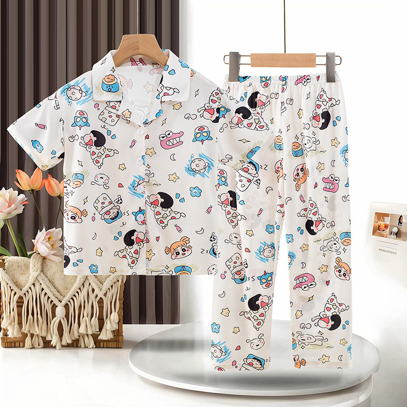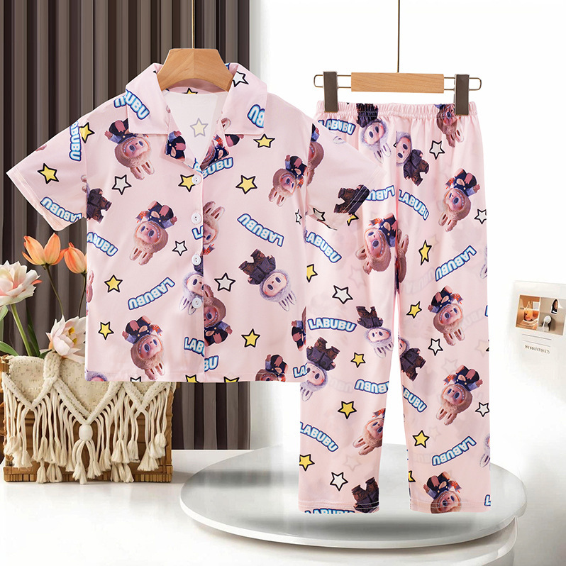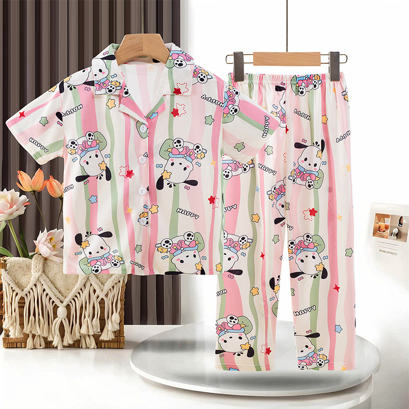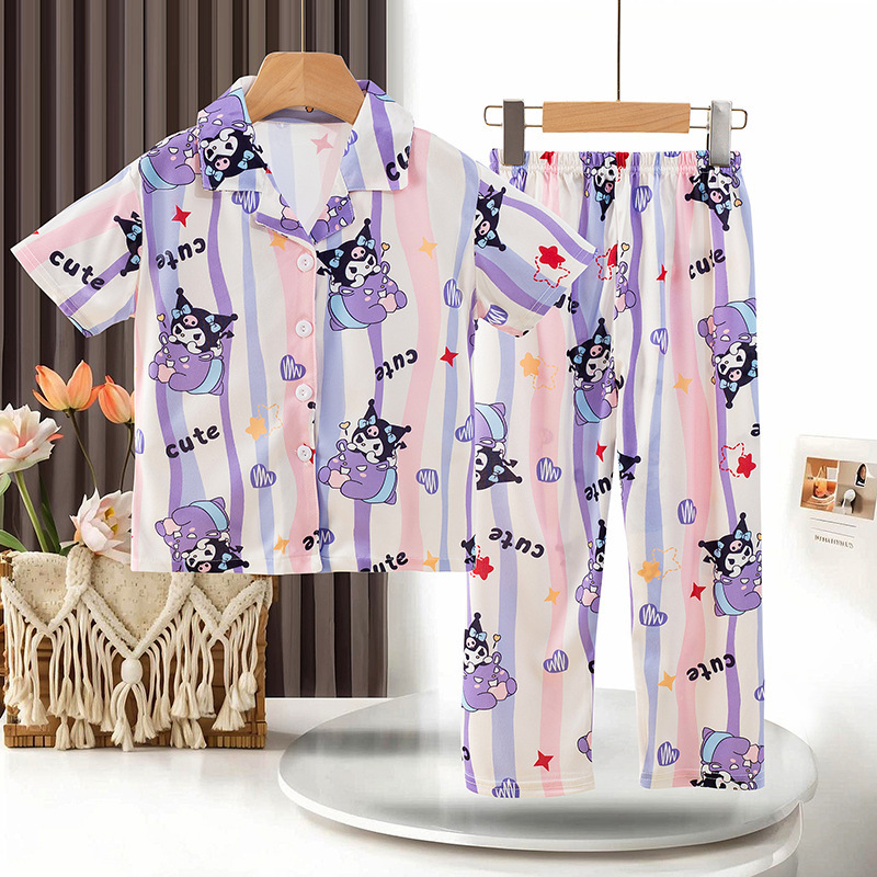 동남아 소녀 잠옷 여름 반팔 새 스타일 반팔 바지 어린 소녀와 어린이를위한 큰 어린이 에어컨 홈 의류 트렌디