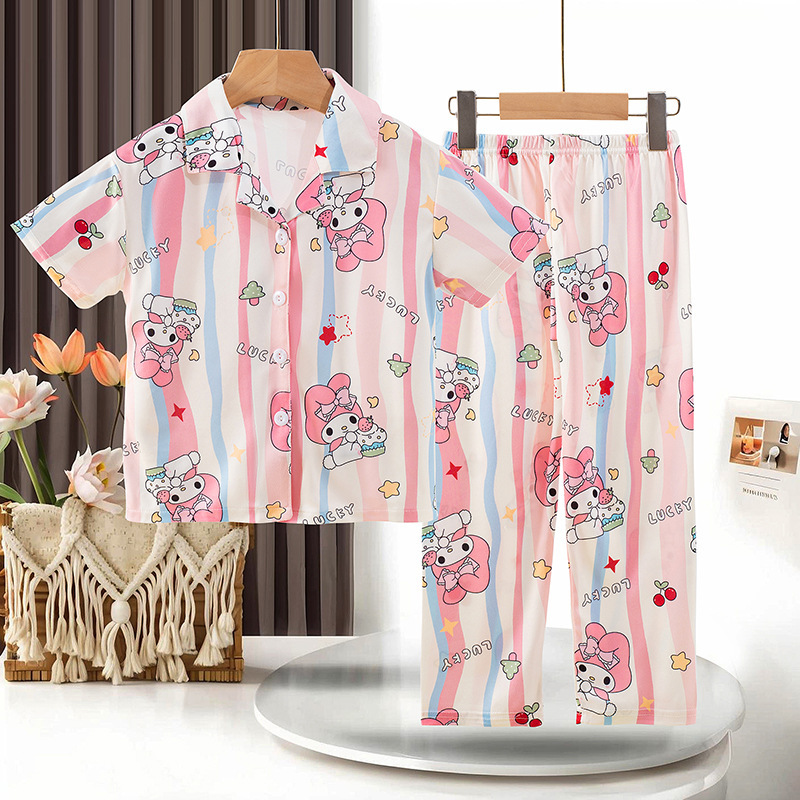 동남아 소녀 잠옷 여름 반팔 새 스타일 반팔 바지 어린 소녀와 어린이를위한 큰 어린이 에어컨 홈 의류 트렌디스토어 가기