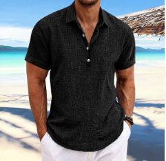 유럽과 미국 반소매 남성 셔츠 여름 대외 무역 국경 아마존 단색 옷깃 유럽 사이즈 비즈니스 캐주얼 옷깃 카디건 남성