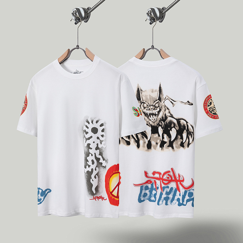 국경 간 2024 새로운 여름 힙합 폼 남성 라운드 넥 풀오버 캐주얼 루즈 반팔 유럽과 미국 티셔츠 여성스토어 가기