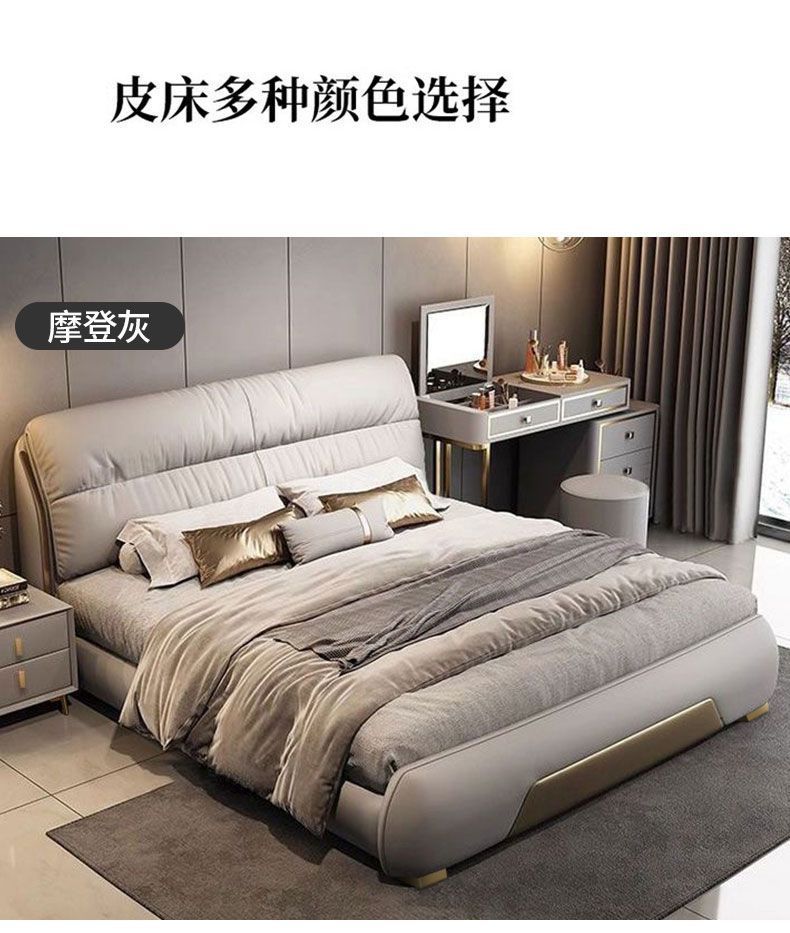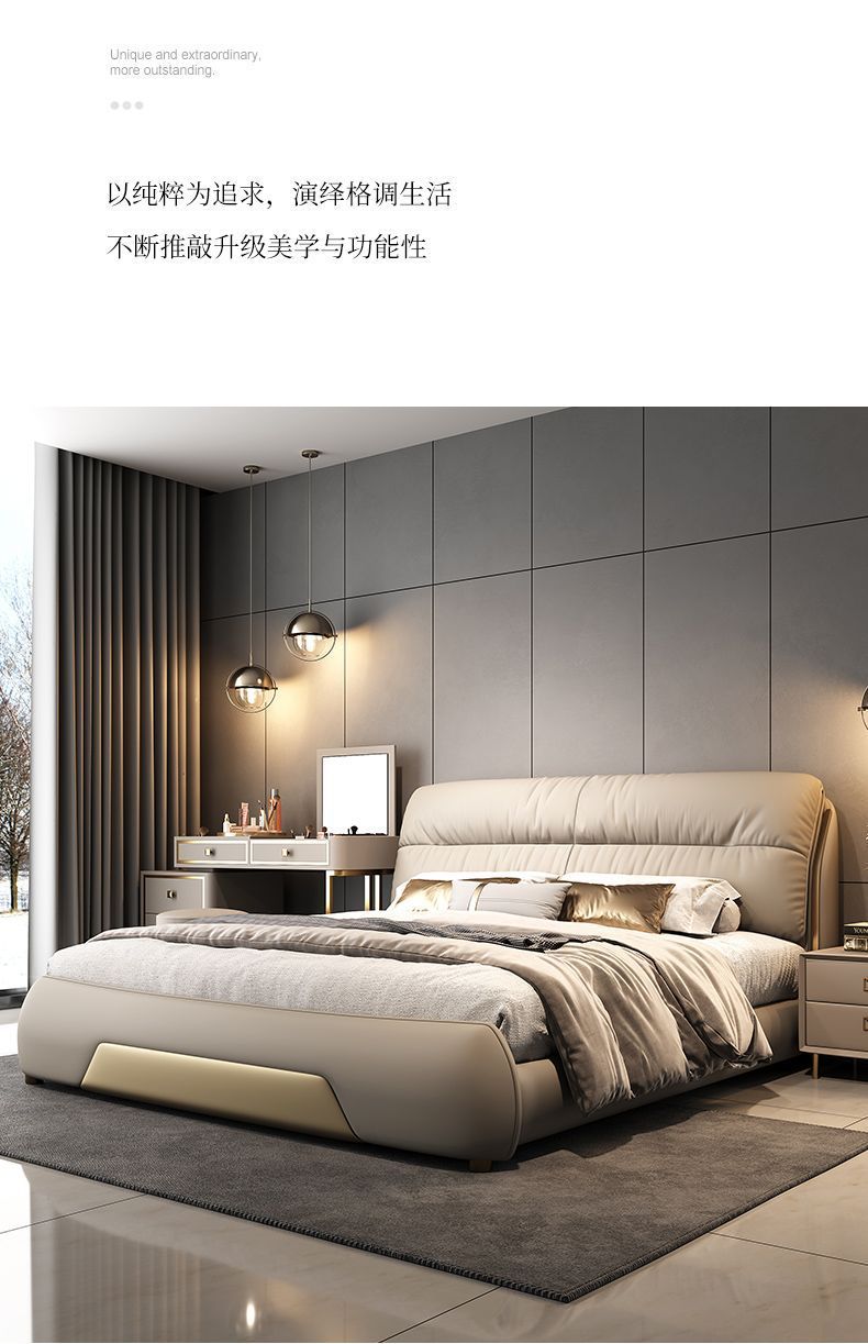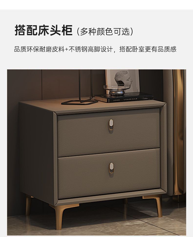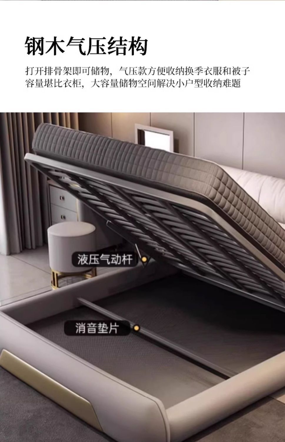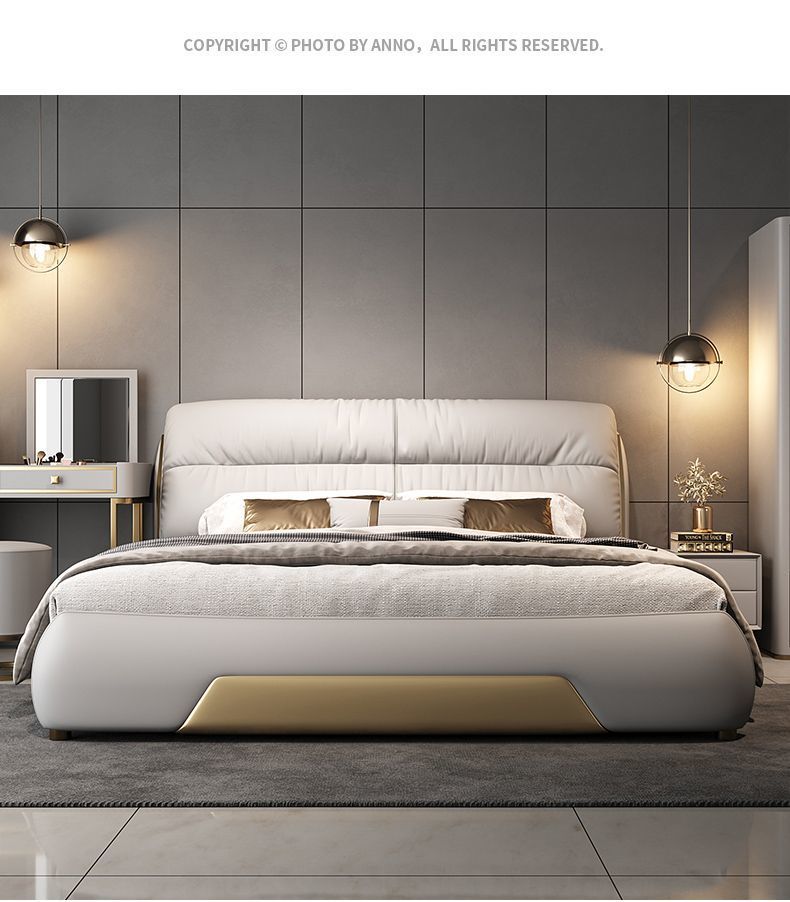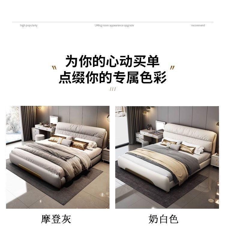 가벼운 고급 현대 가죽 마스터 침실 퀸 침대 이탈리아 스타일 미니멀리스트 스토리지 간단한 하이 엔드 마스터 침실 대기 소프트 백 더블 침대스토어 가기