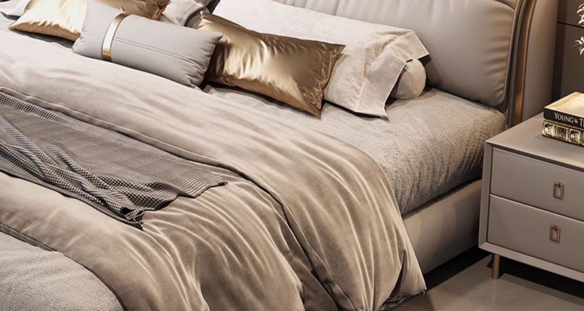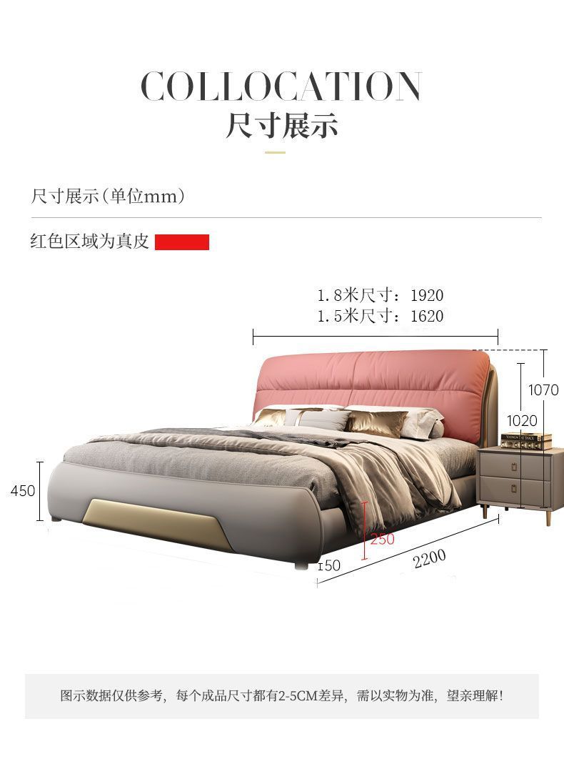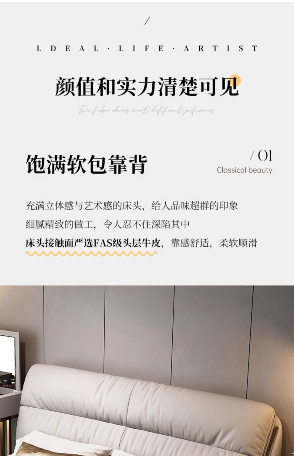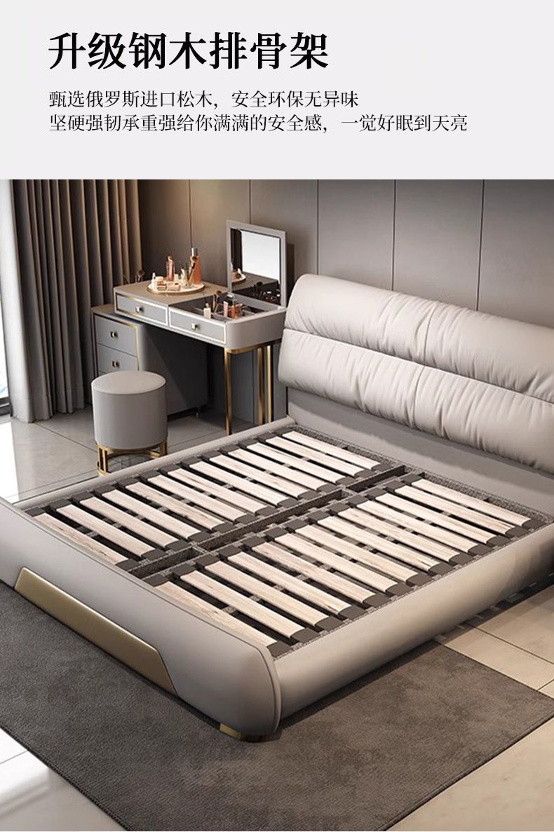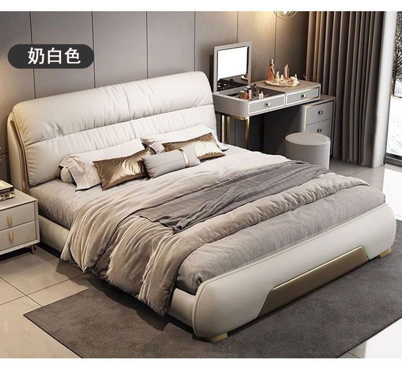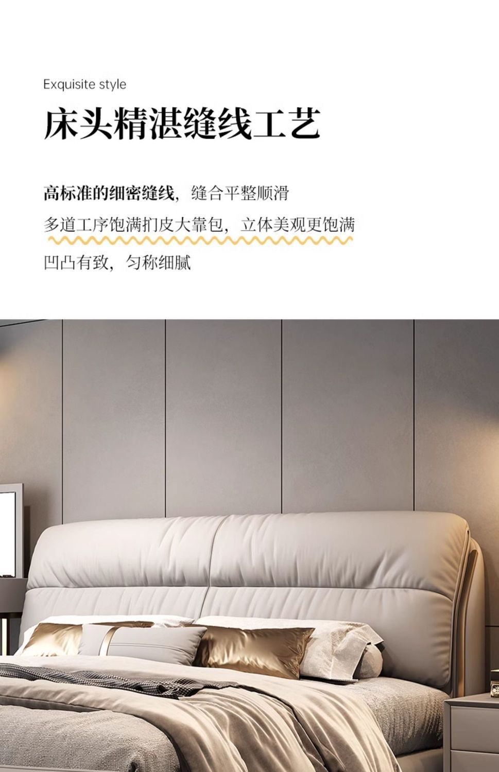가벼운 고급 현대 가죽 마스터 침실 퀸 침대 이탈리아 스타일 미니멀리스트 스토리지 간단한 하이 엔드 마스터 침실 대기 소프트 백 더블 침대스토어 가기