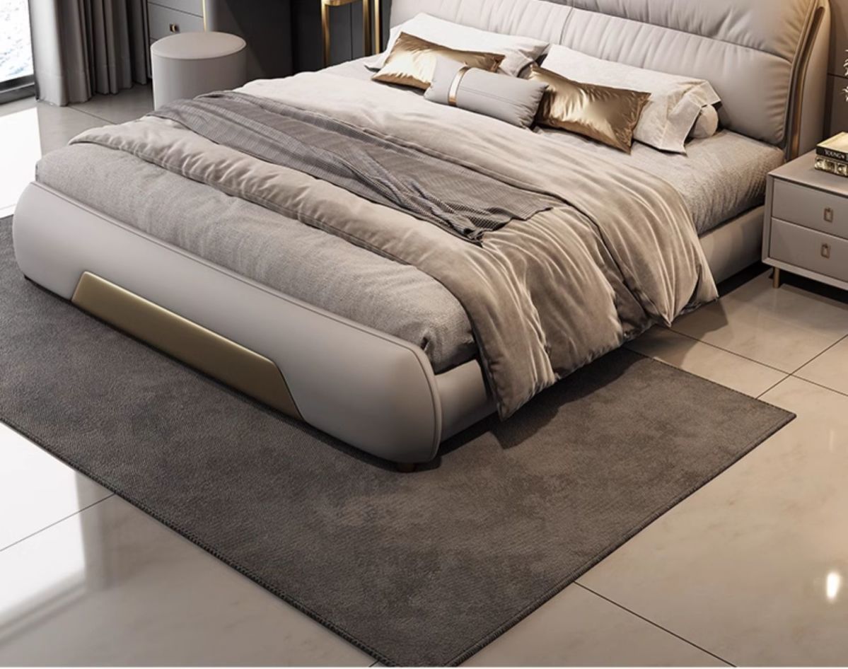 가벼운 고급 현대 가죽 마스터 침실 퀸 침대 이탈리아 스타일 미니멀리스트 스토리지 간단한 하이 엔드 마스터 침실 대기 소프트 백 더블 침대