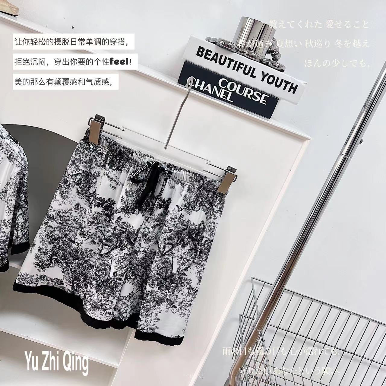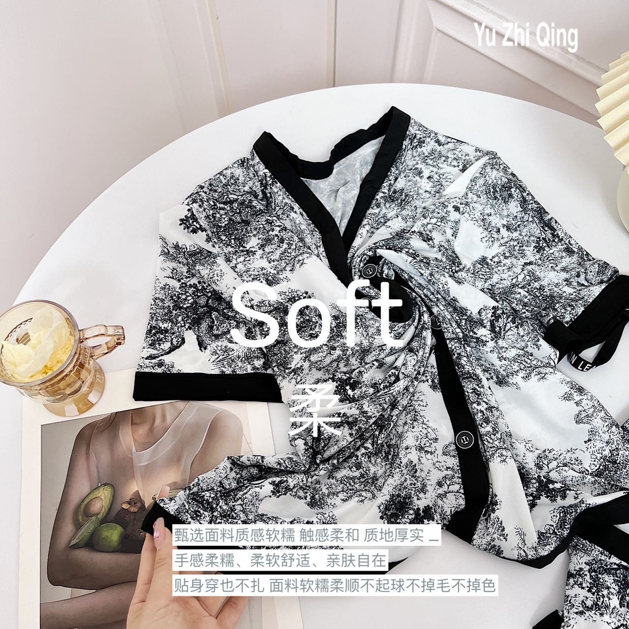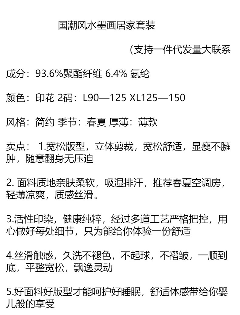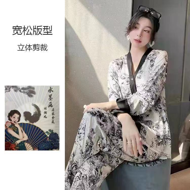 잉크 그림 4 조각 세트 국가 패션 파자마 유행 여름 느슨한 편안한 인쇄 된 얼음 느낌 홈 의류 세트 박스스토어 가기