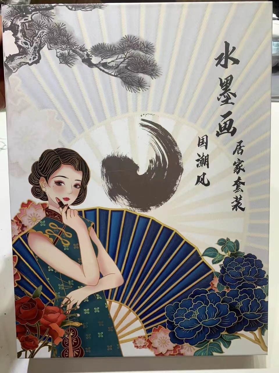 잉크 그림 4 조각 세트 국가 패션 파자마 유행 여름 느슨한 편안한 인쇄 된 얼음 느낌 홈 의류 세트 박스