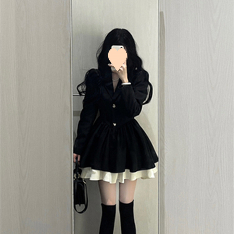 통통한 프랑스 스타일 하이 엔드 우아한 블랙 세트 원피스 여성 가을 플러스 사이즈 웨이스트 슬림 핏 프린세스 폰툰 원피스스토어 가기