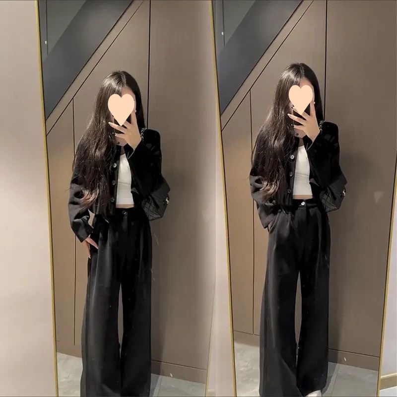 샤오 샹 스타일 패션 세트 여성 봄 2025 새로운 서양식 연령 감소 우유 부서 작은 바지 투피스 세트 착용스토어 가기