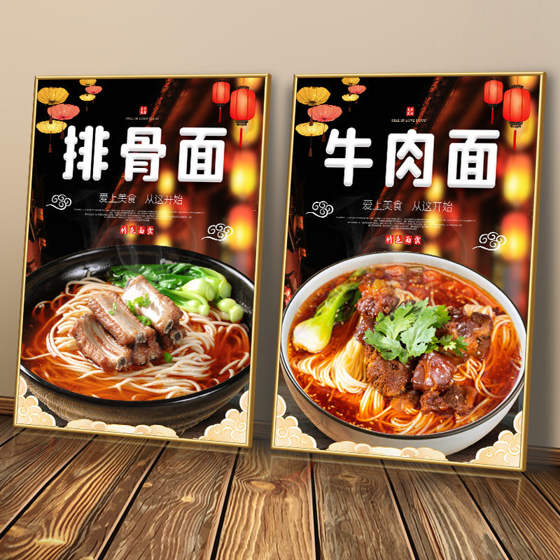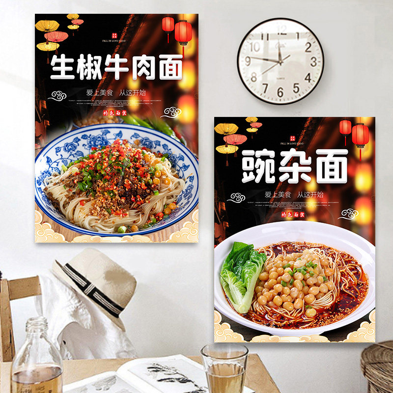 VHM7 도매 쇠고기 국수 가게 장식 그림 벽 스티커 포스터 스티커 상점 벽 광고 벽면 아침 충칭