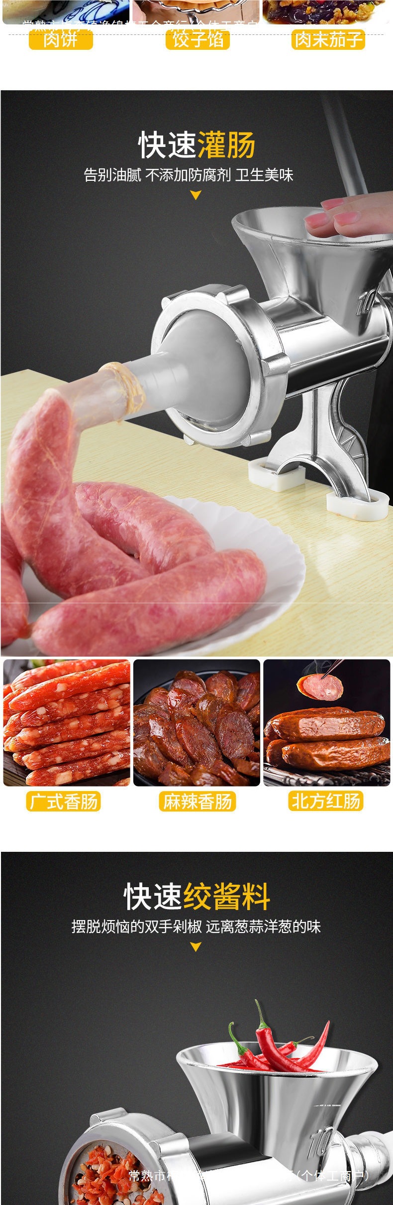 다기능 고기 분쇄기 수동 소시지 기계 가정용 작은 손으로 작동하는 고기 분쇄기 스터핑 기계 소시지 소시지 고추