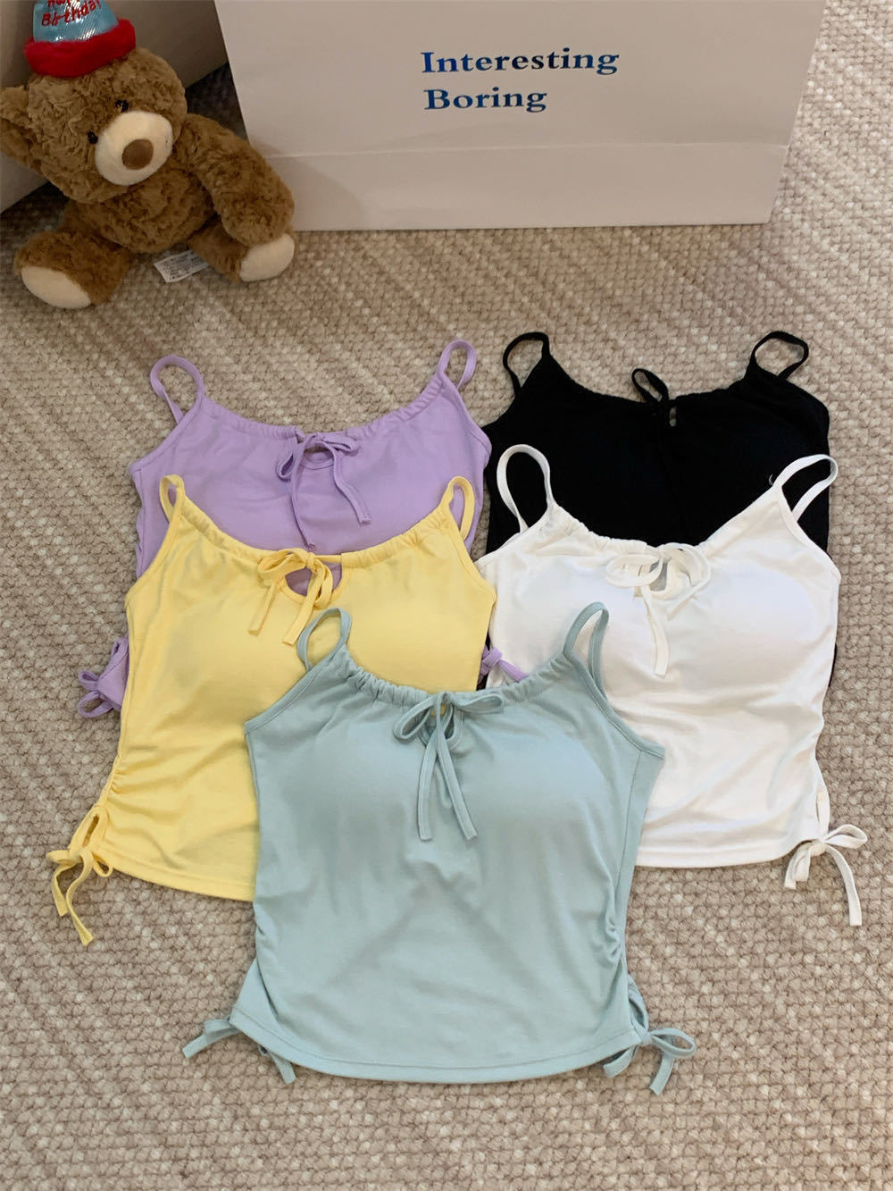 순수한 욕망 스타일 중공 서랍 활 카미솔 뷰티 스트랩 가슴 패드 달콤한 스파이스 소녀 외부 착용 단색 탑 조끼스토어 가기