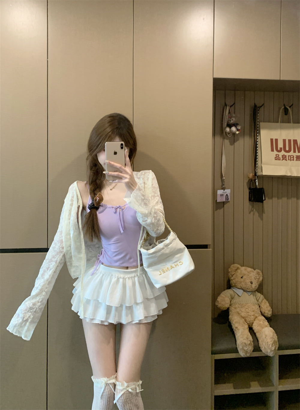 순수한 욕망 스타일 중공 서랍 활 카미솔 뷰티 스트랩 가슴 패드 달콤한 스파이스 소녀 외부 착용 단색 탑 조끼