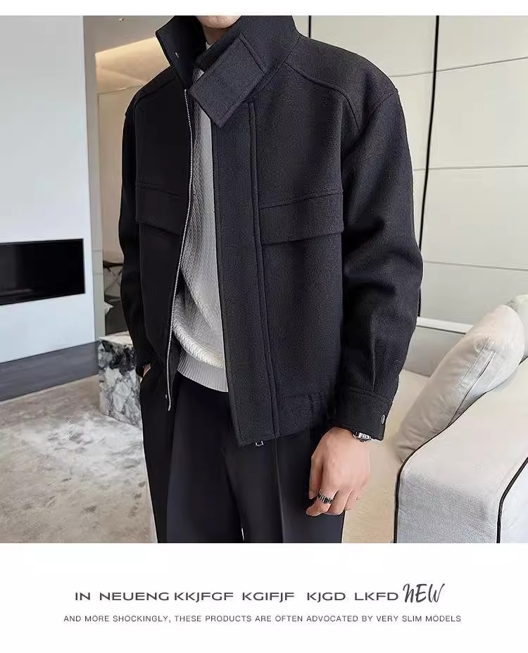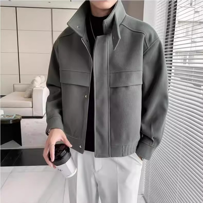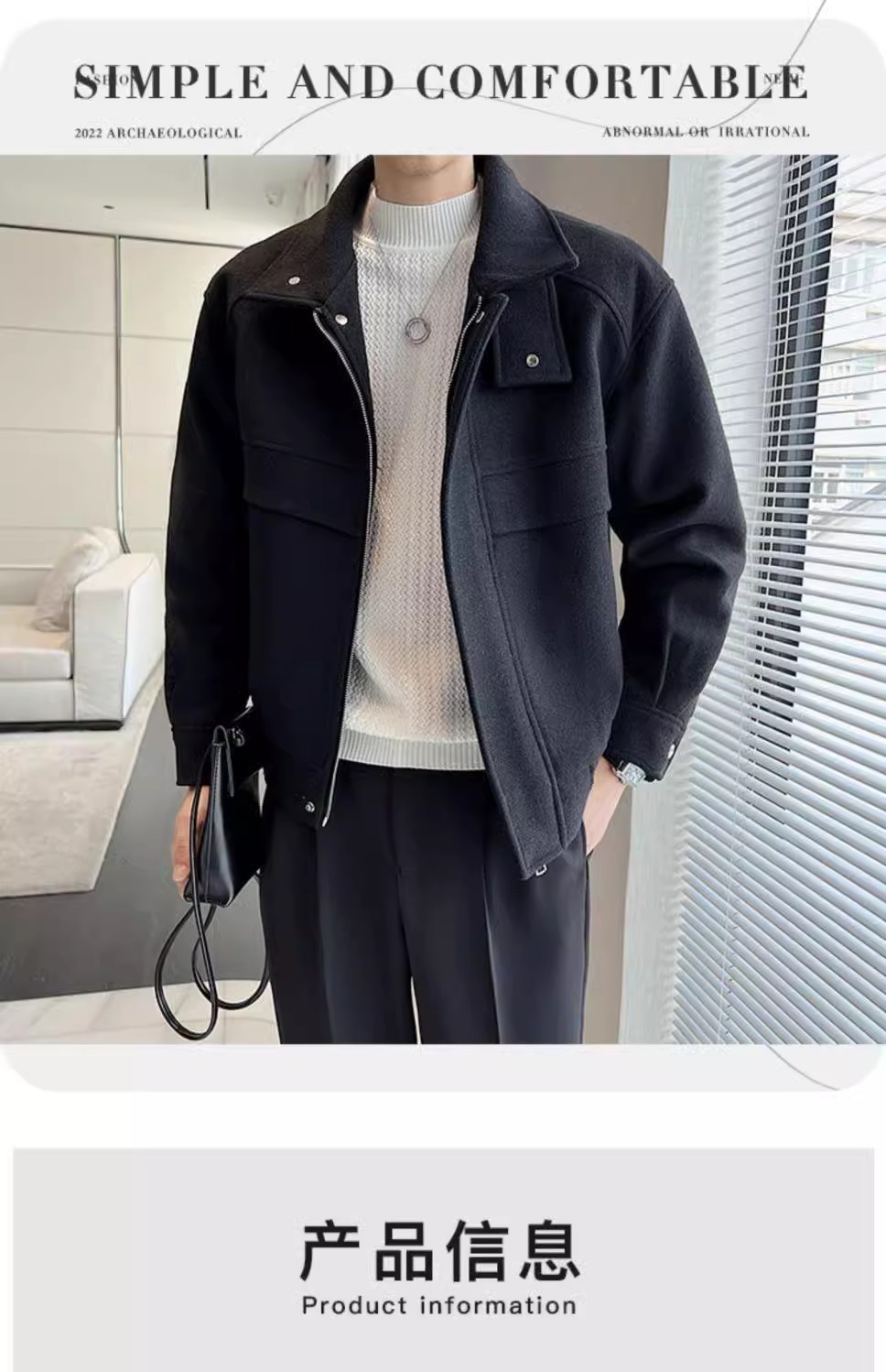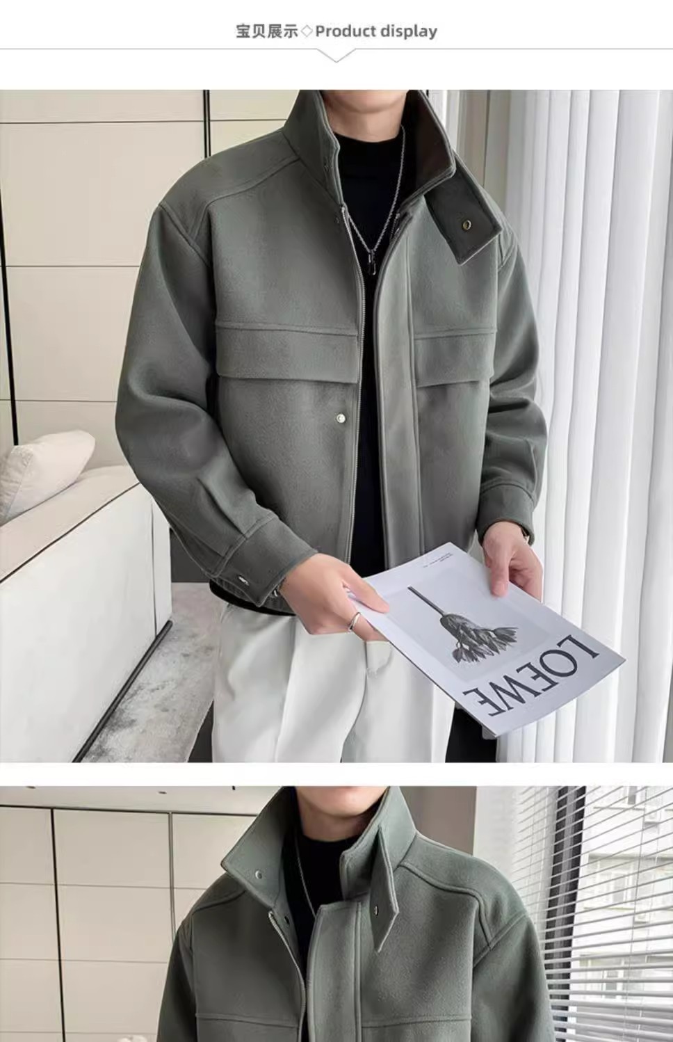 모직 코트 남자 가을과 겨울 짧은 옷깃 캐주얼 트렌디 브랜드 자켓 한국식 올매치 두꺼운 티트 탑 트렌디스토어 가기