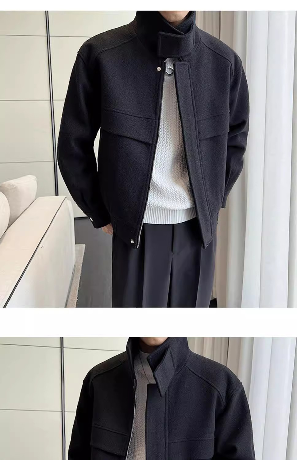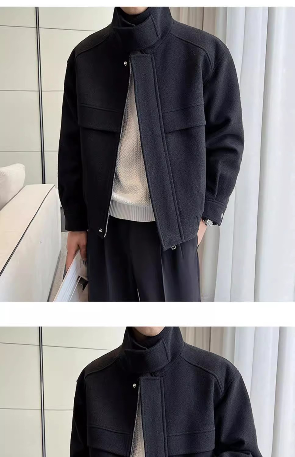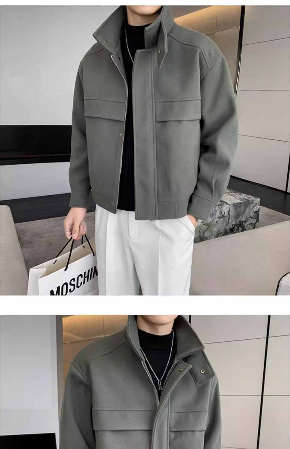 모직 코트 남자 가을과 겨울 짧은 옷깃 캐주얼 트렌디 브랜드 자켓 한국식 올매치 두꺼운 티트 탑 트렌디스토어 가기