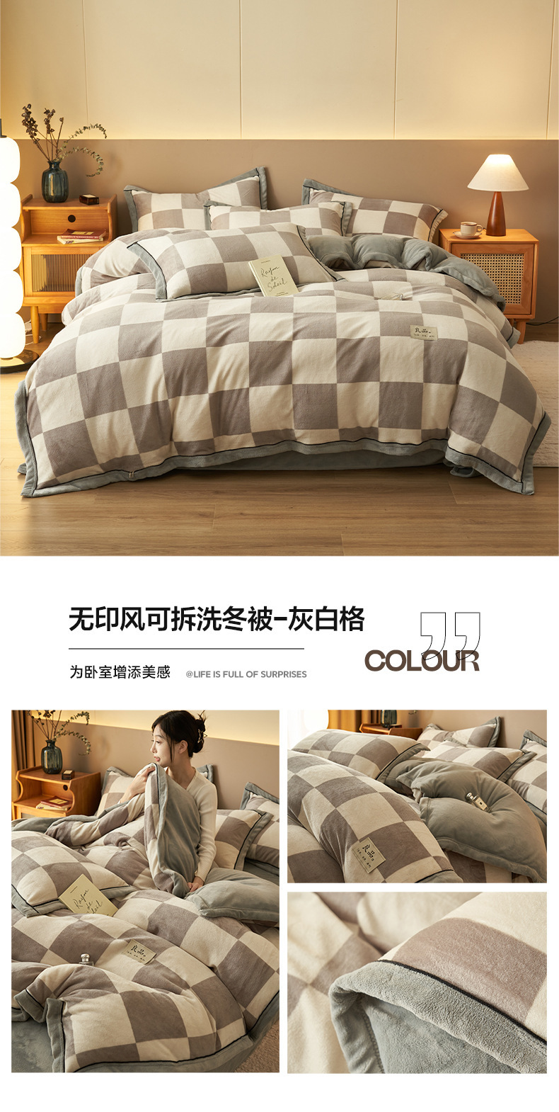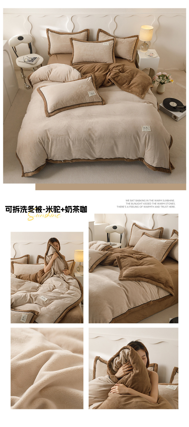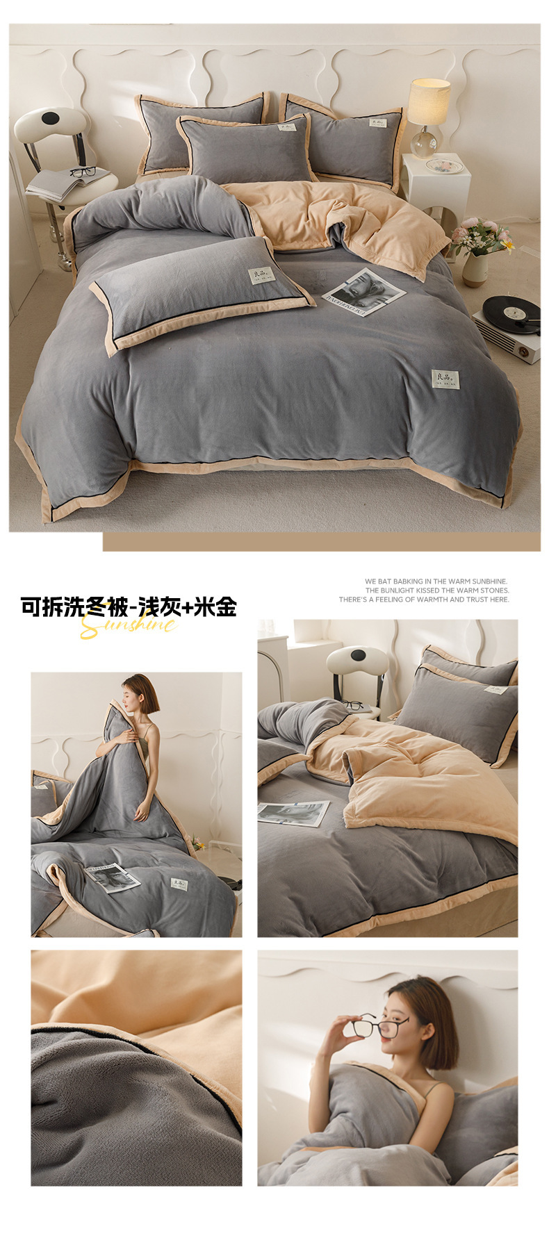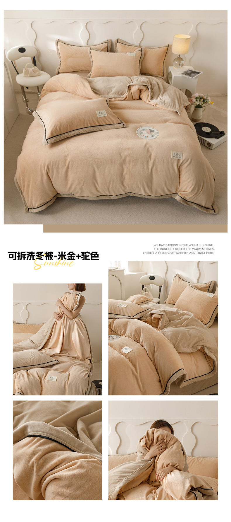 이불 커버 풀 세트 더블 스펠 밀크 벨벳 겨울 퀼트 양고기 벨벳 퀼트 코어가 두껍게 도매로 탈착식 및 빨 수있는 이불 겨울
