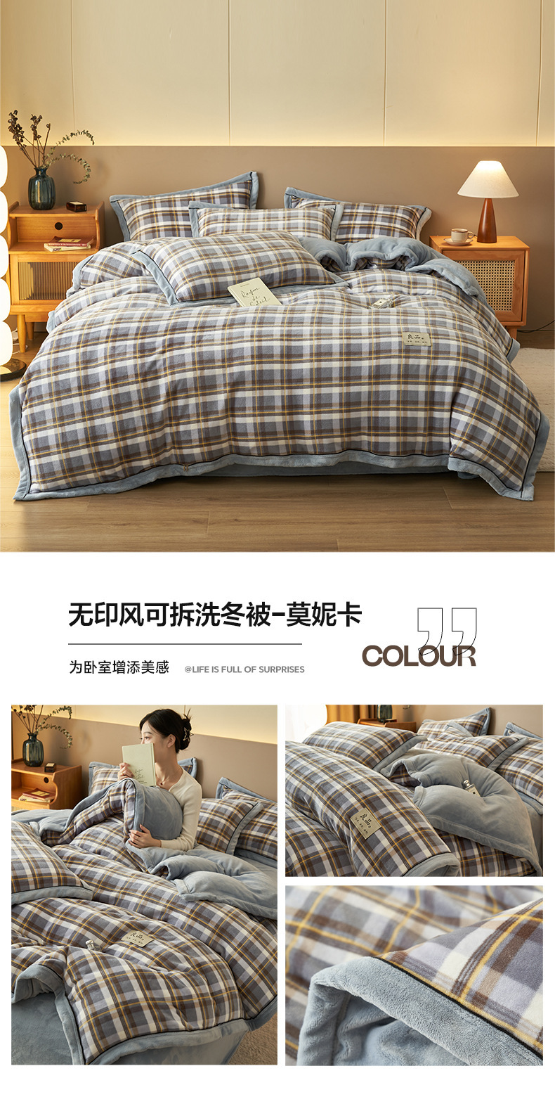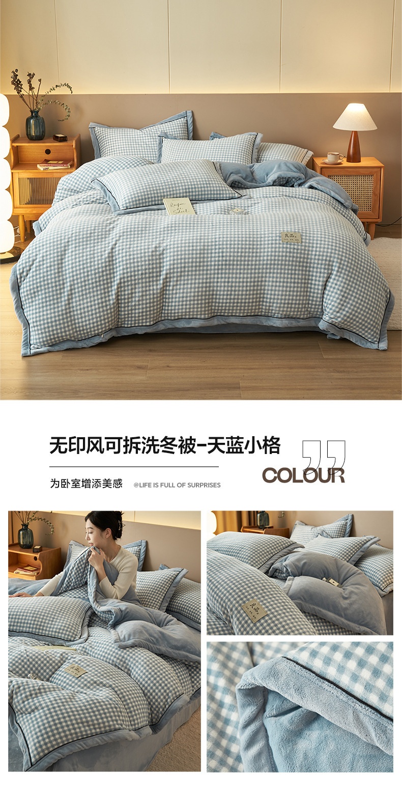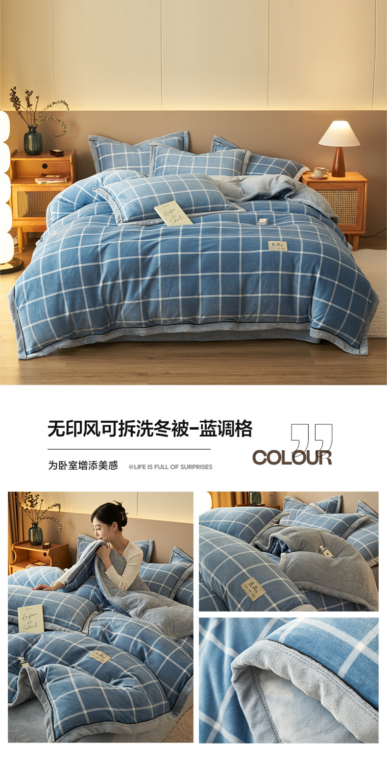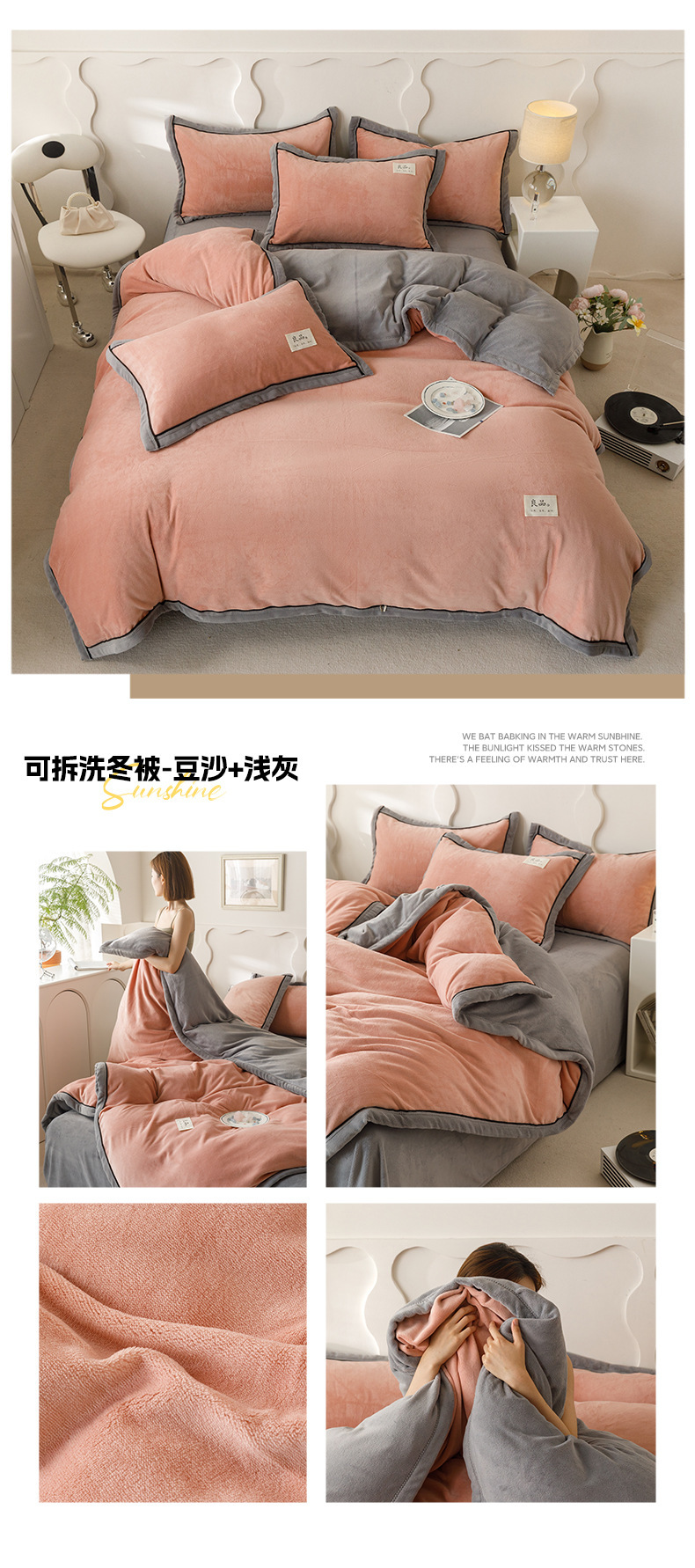 이불 커버 풀 세트 더블 스펠 밀크 벨벳 겨울 퀼트 양고기 벨벳 퀼트 코어가 두껍게 도매로 탈착식 및 빨 수있는 이불 겨울