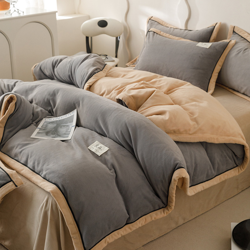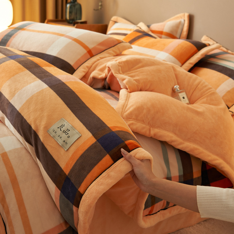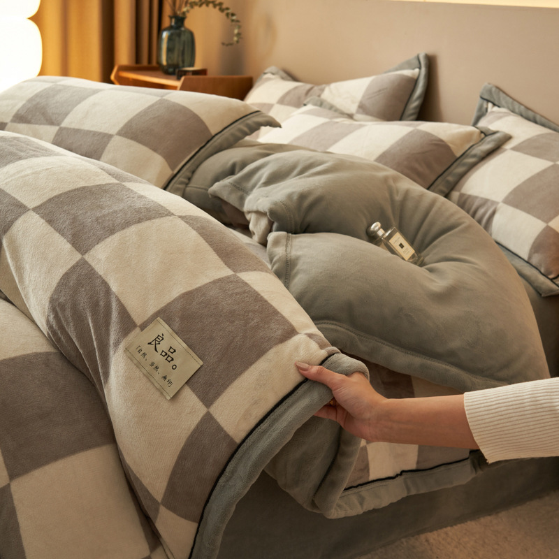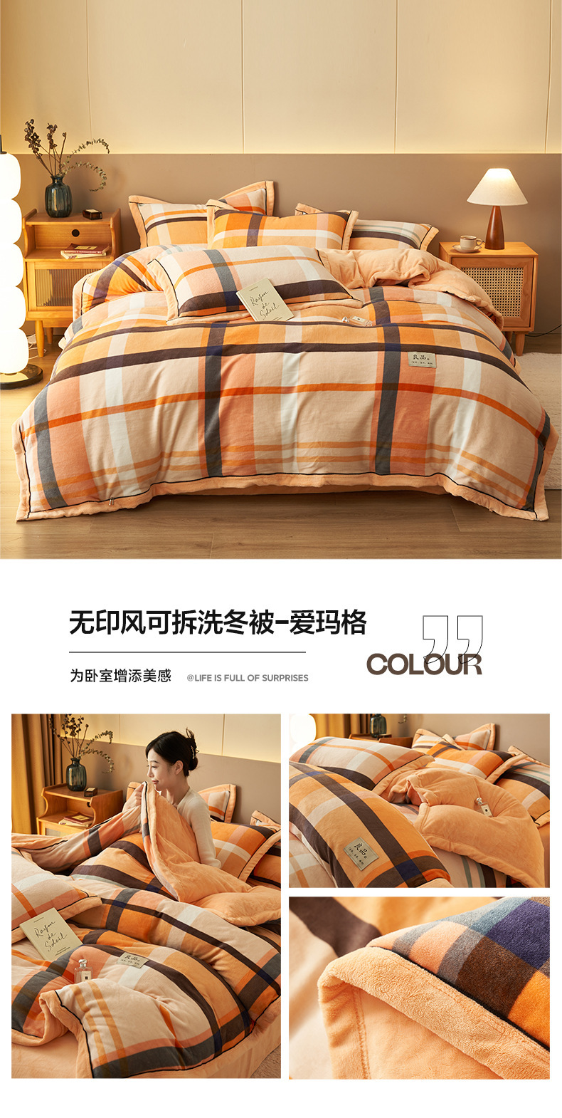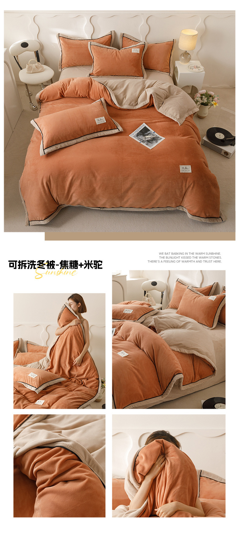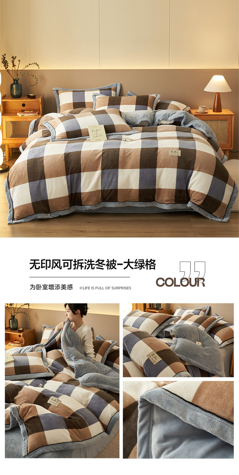 이불 커버 풀 세트 더블 스펠 밀크 벨벳 겨울 퀼트 양고기 벨벳 퀼트 코어가 두껍게 도매로 탈착식 및 빨 수있는 이불 겨울
