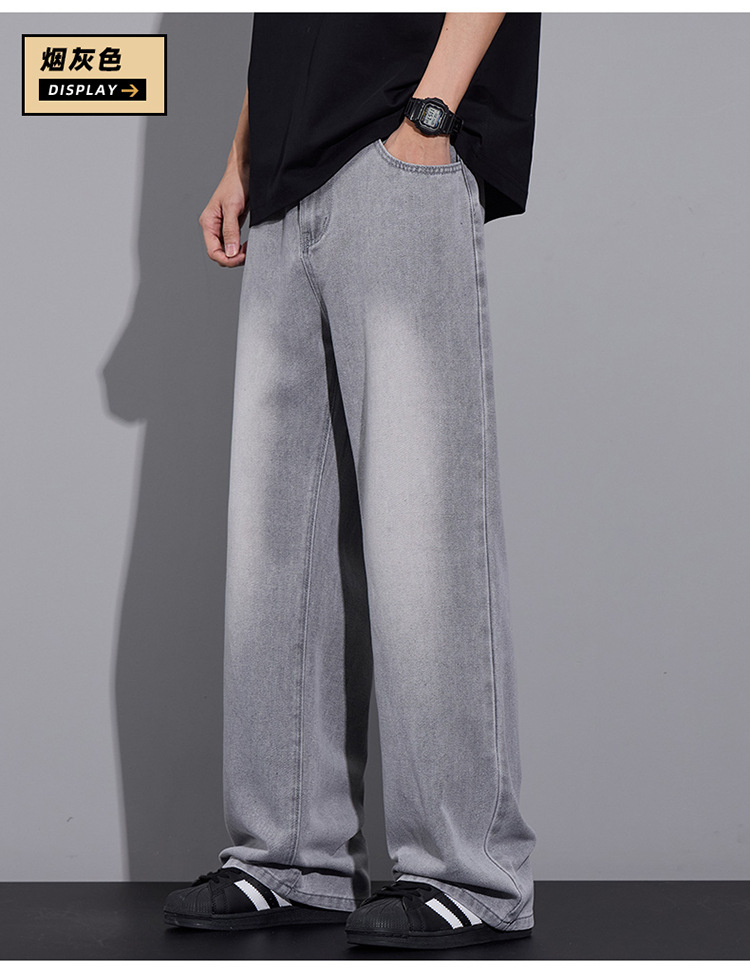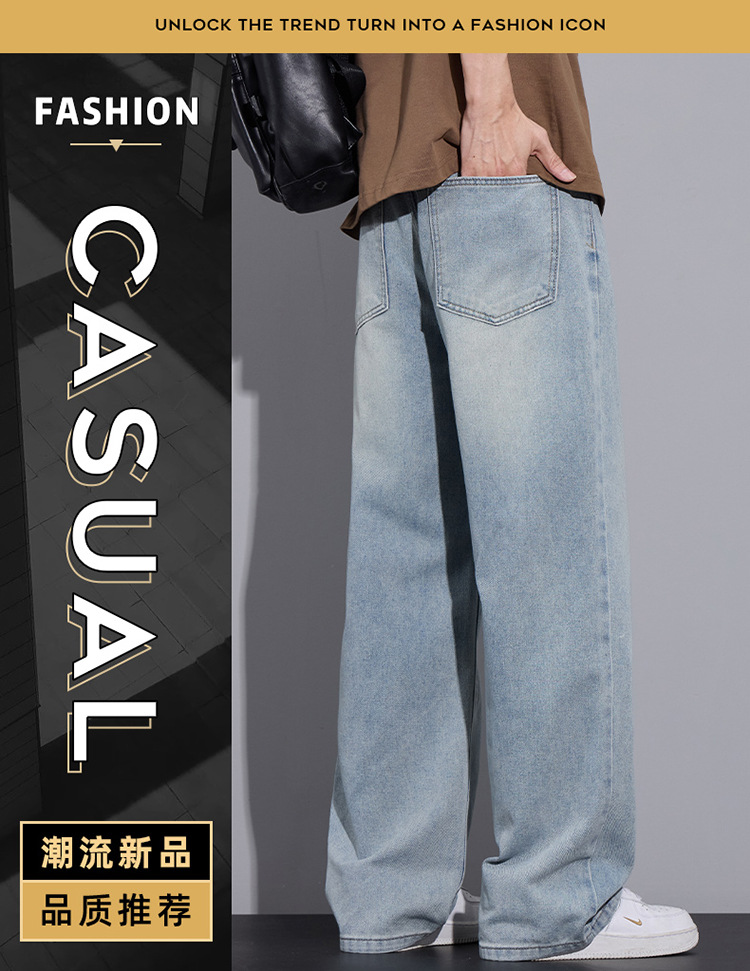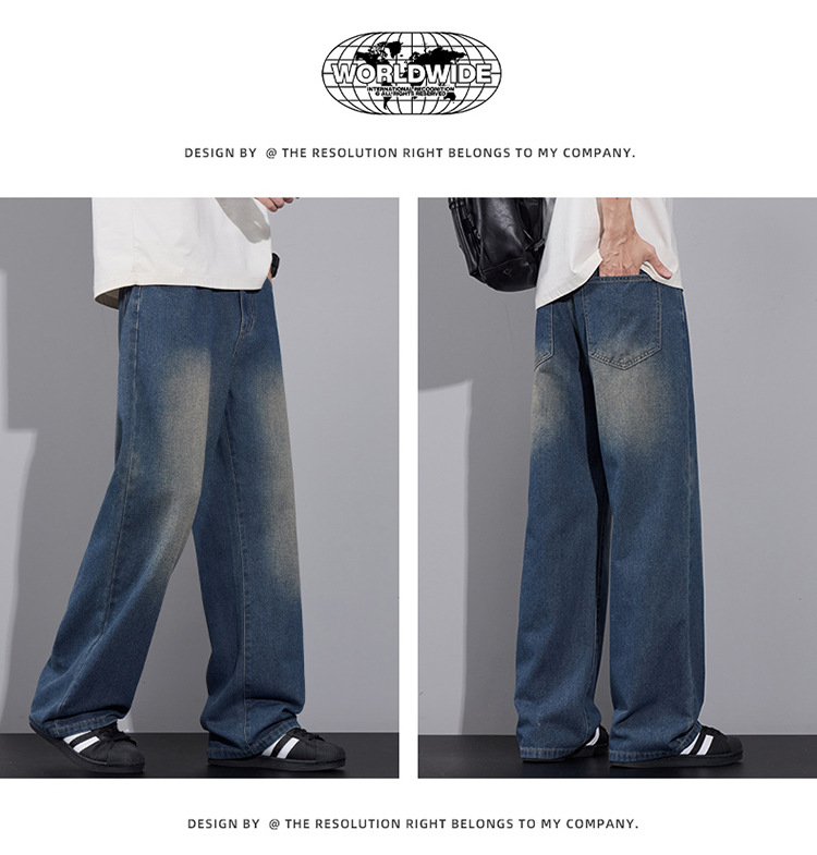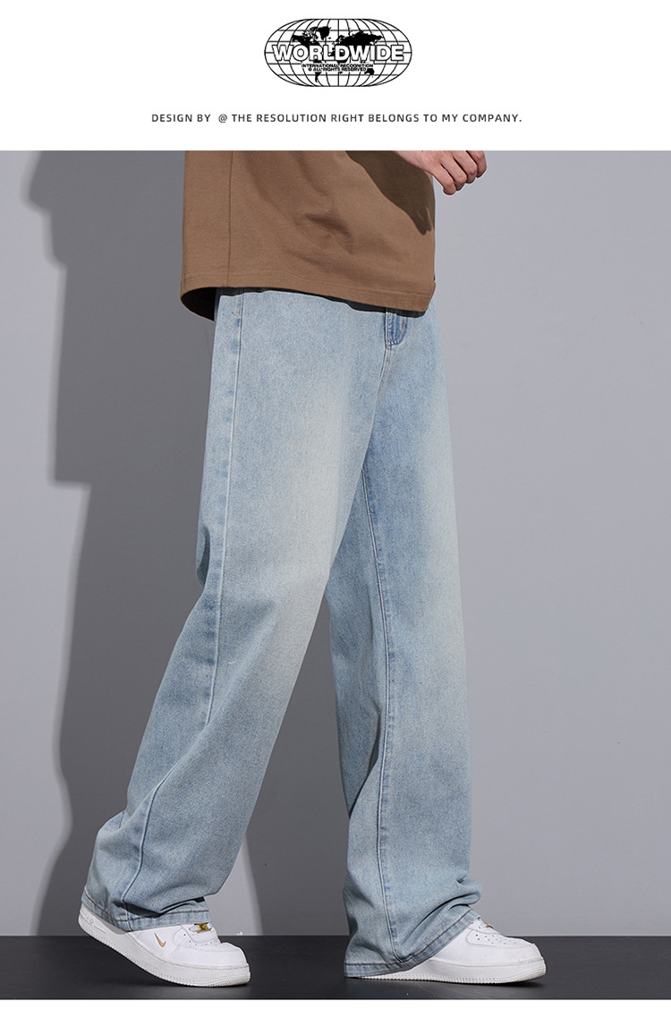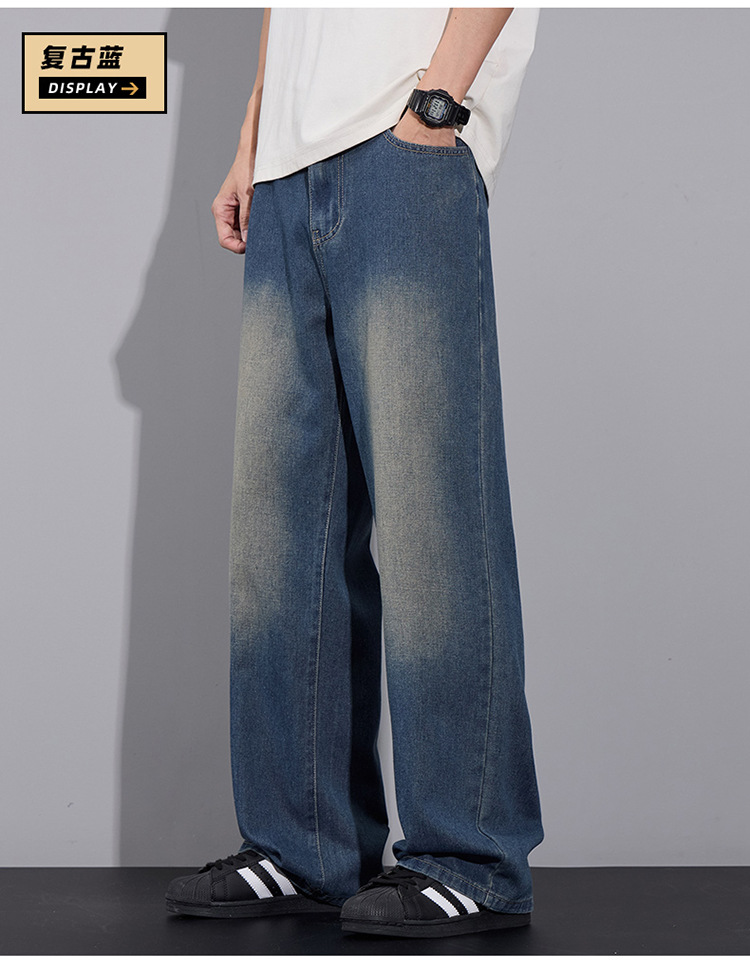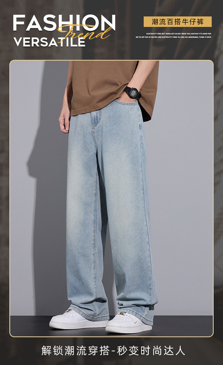 폭발성 청바지 남자 유행 올매치 느슨한 와이드 레그 바지 봄과 여름 유행 브랜드 레트로 스트레이트 바지스토어 가기