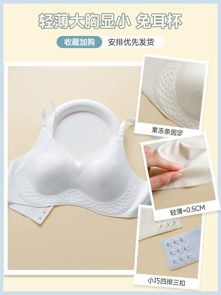 아이스 실크 쿨 토끼 귀 속옷 여성의 여름 얇은 통기성 비 강철 반지 작은 가슴 푸시 업 처짐 방지 추적 브래지어스토어 가기