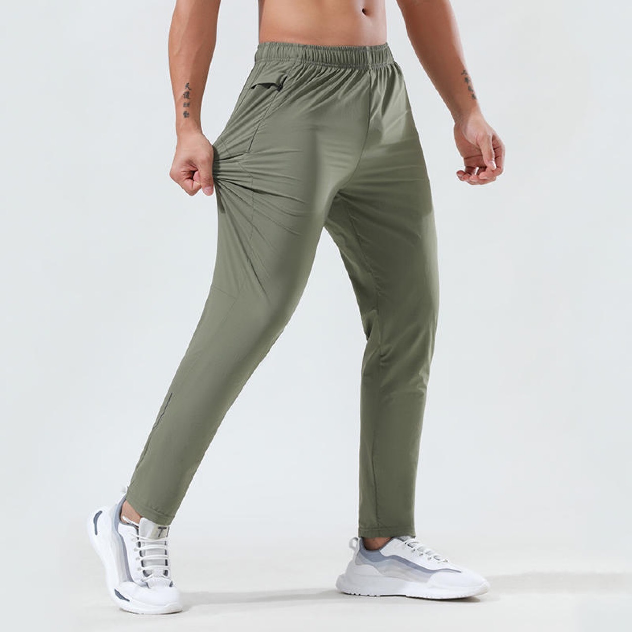 LULU 스포츠 빠른 건조 바지 남자의 느슨한 여름 얇은 얼음 실크 야외 달리기 피트니스 요가 레저 훈련 바지