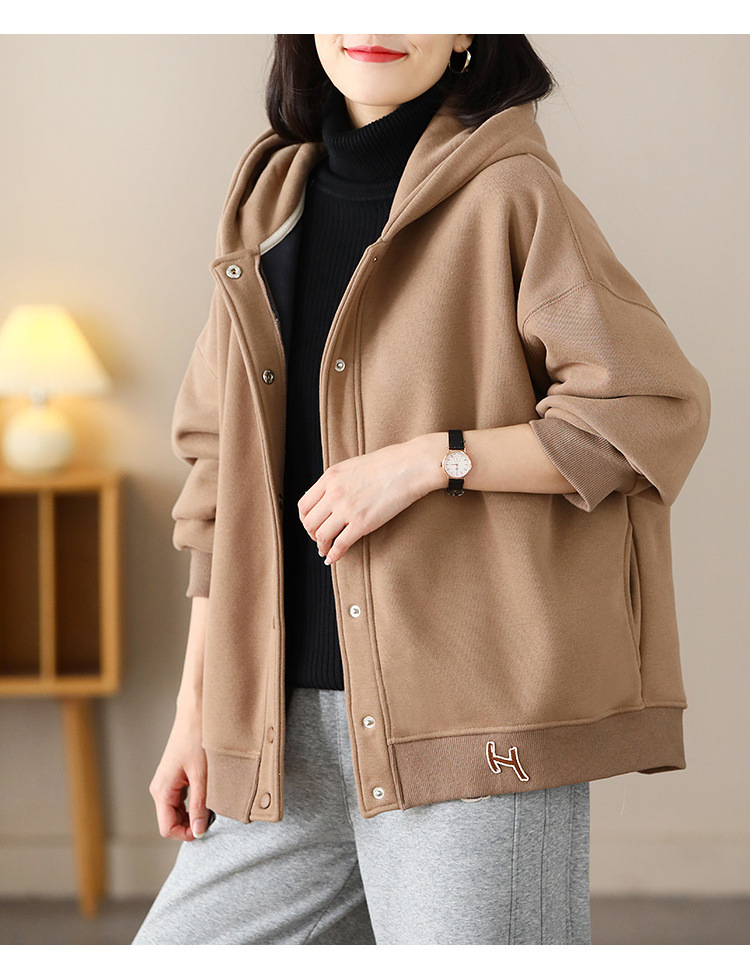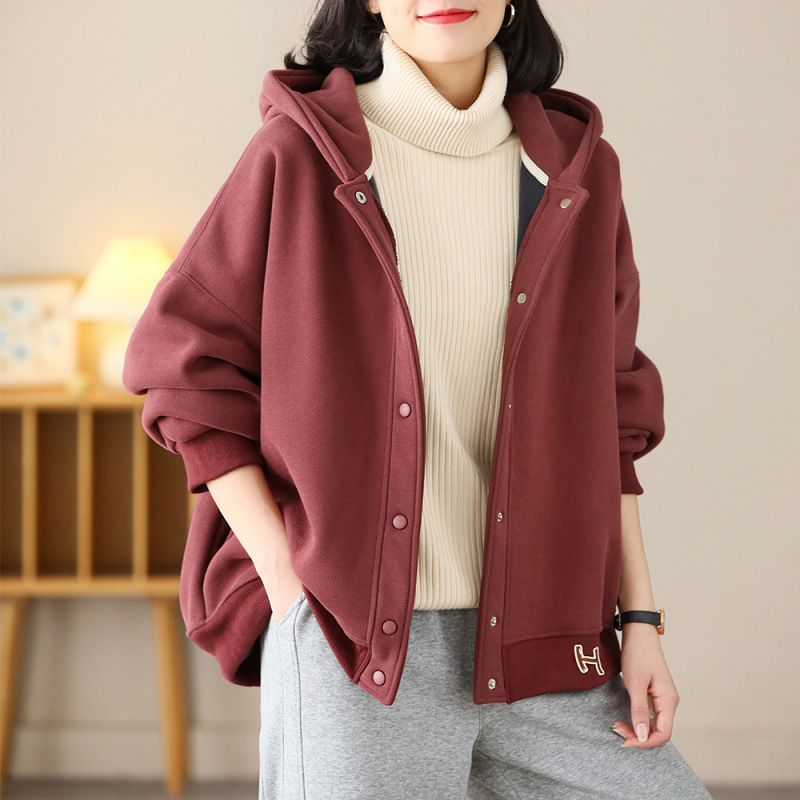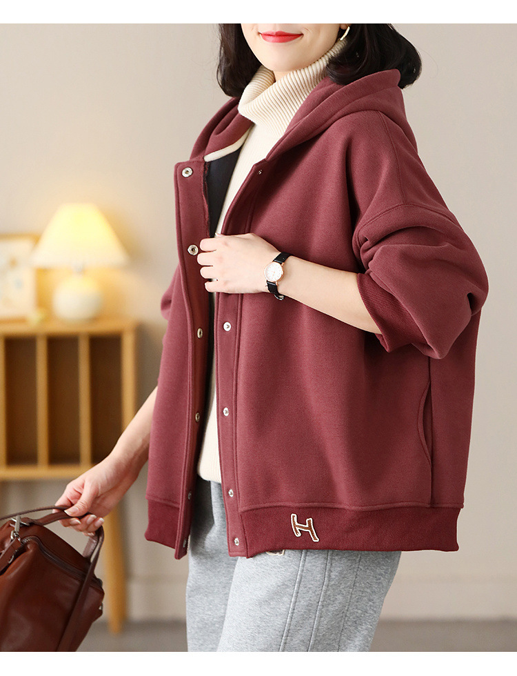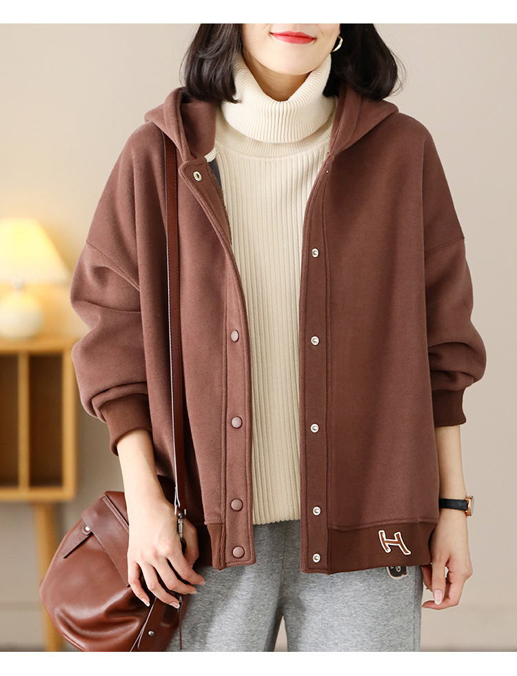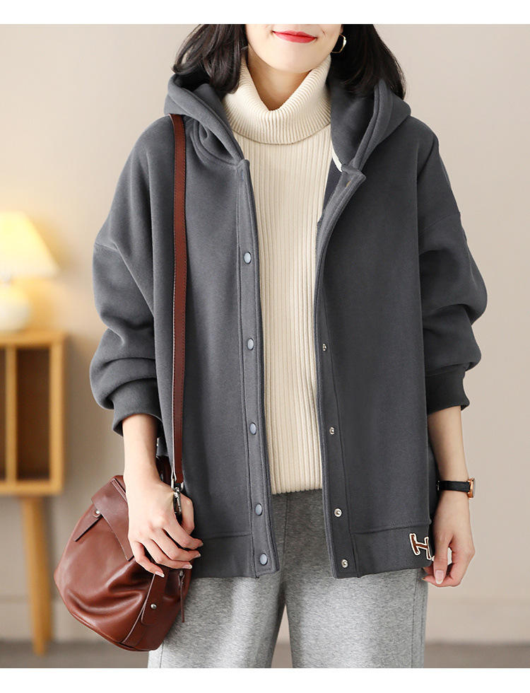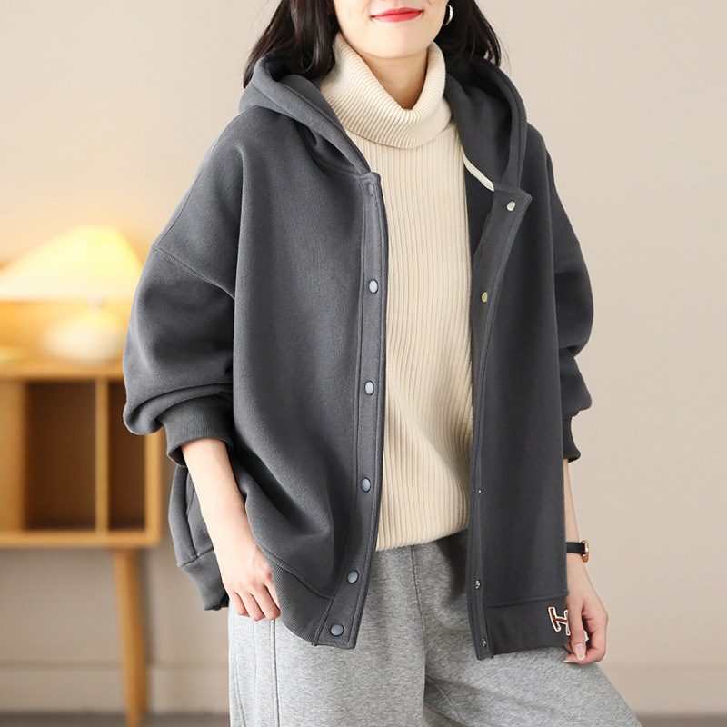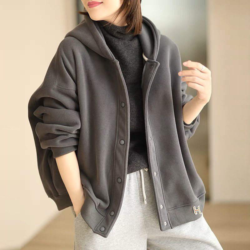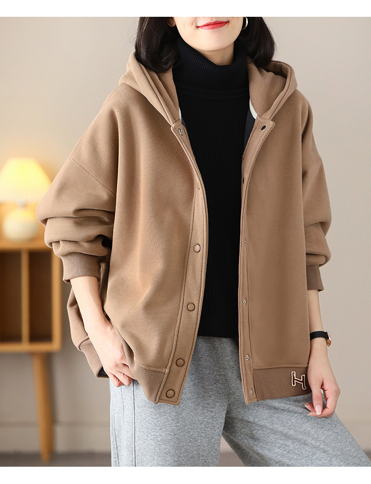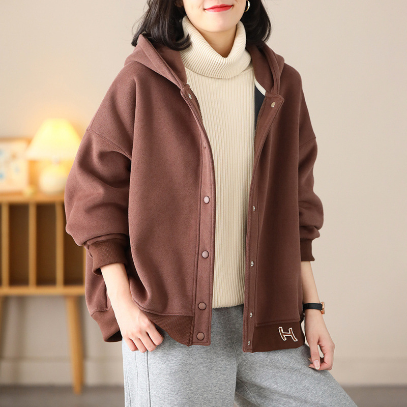 기모 스웨트셔츠 여자 새 플러스 사이즈 느슨한 예술적 올매치 한국식 슬리밍 가을과 겨울 두꺼운 캐주얼 후드 자켓