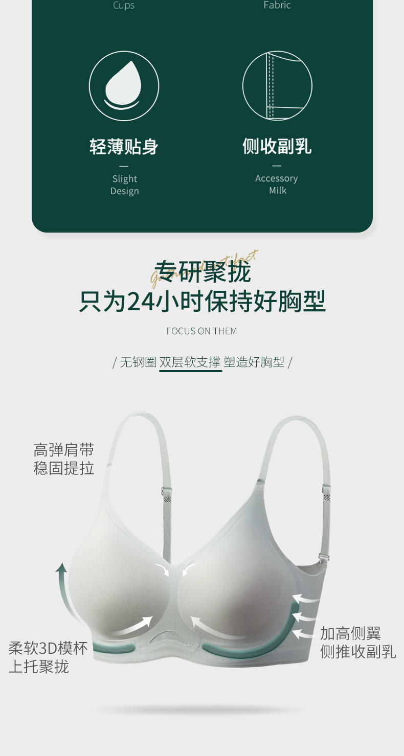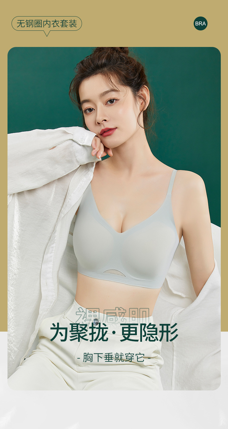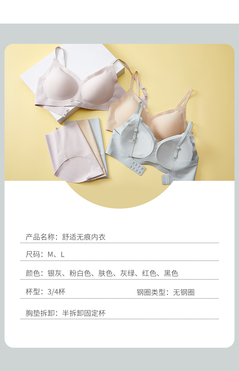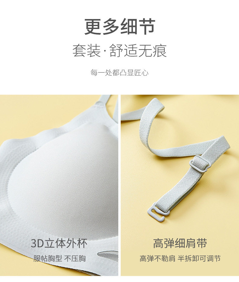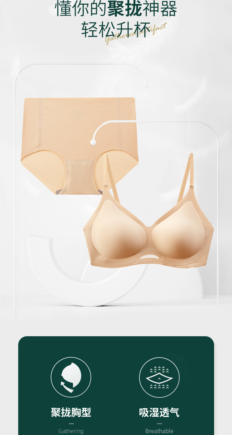 흔적 없는 노와이어 브라, 젊은 여성용 푸쉬업 속옷, 힙업 팬티 세트, 처짐 방지, 옆가슴 보정, 통기성 좋고 편안함스토어 가기