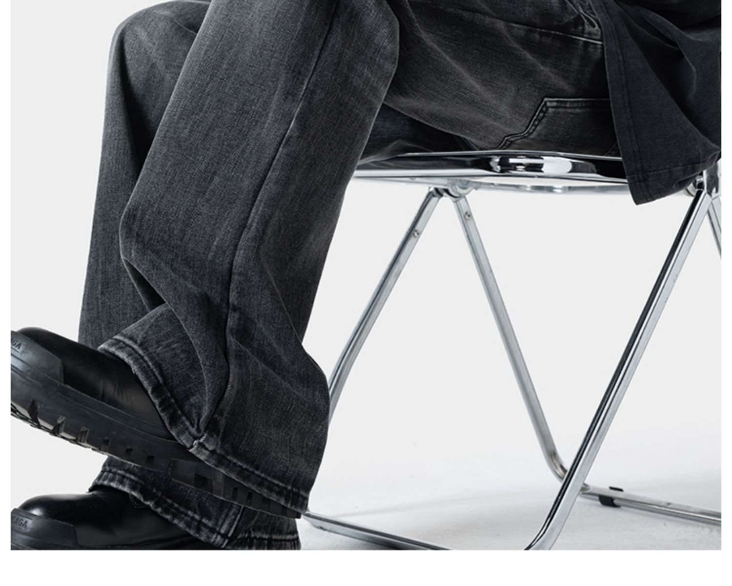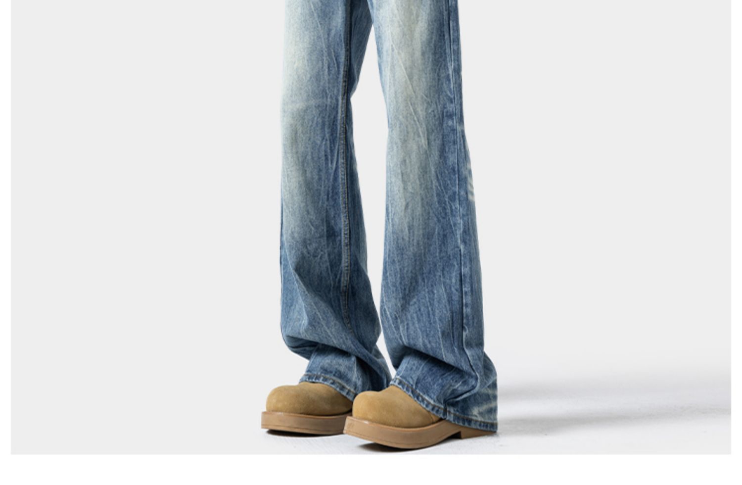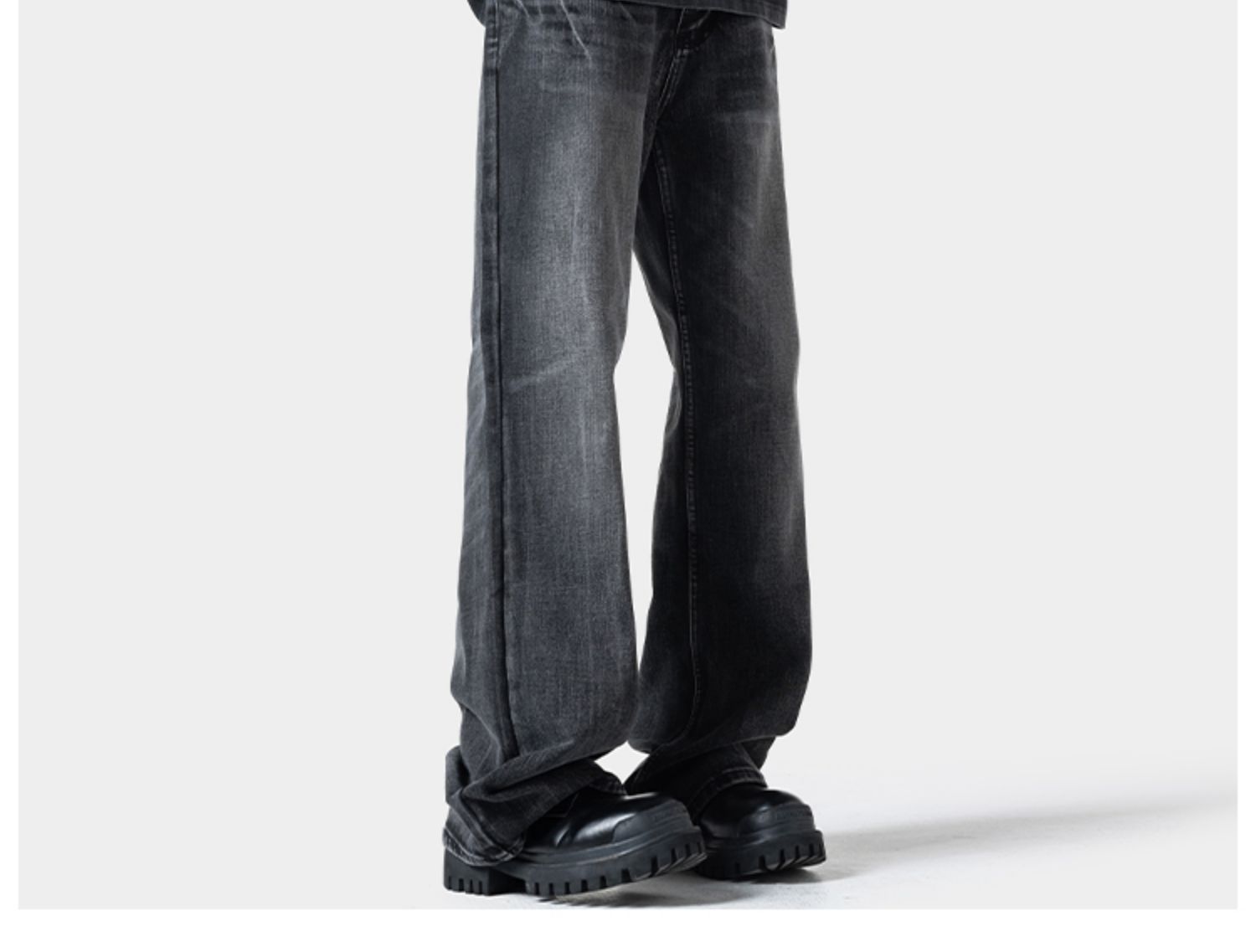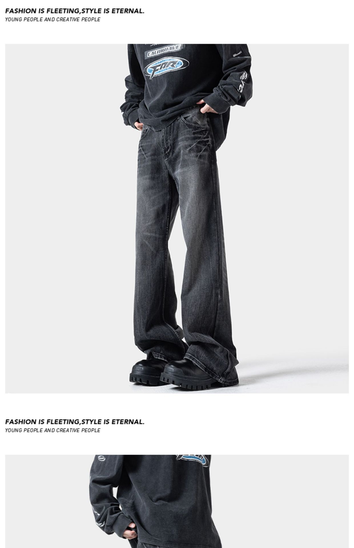 하이 스트리트 워시 라이트닝 패턴 청바지 남성 봄 아메리칸 스타일 구식 플러스 사이즈 와이드 레그 바지 디자인 센스 스트레이트 바지스토어 가기
