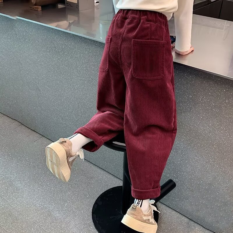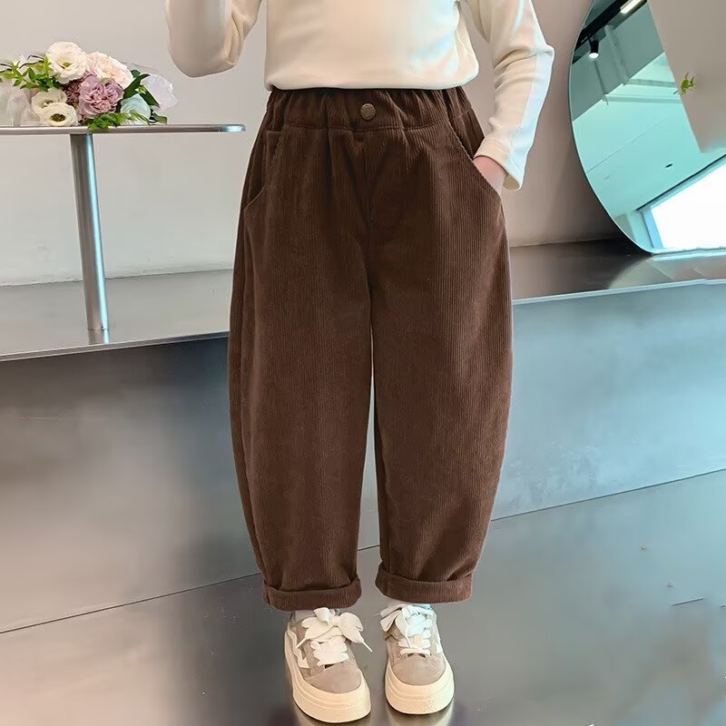 2025 새로운 소녀 가을 소녀 바지 봄과 가을 어린이 가을과 겨울 기모 코듀로이 캐주얼 아동복 가을