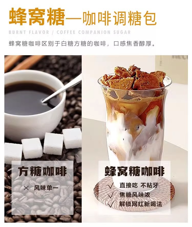 Jiao Kaizka Mero 커피 진한 베이지 블록 벌집 사탕 가방 라떼 화이트 설탕 커피 동반자 상업스토어 가기