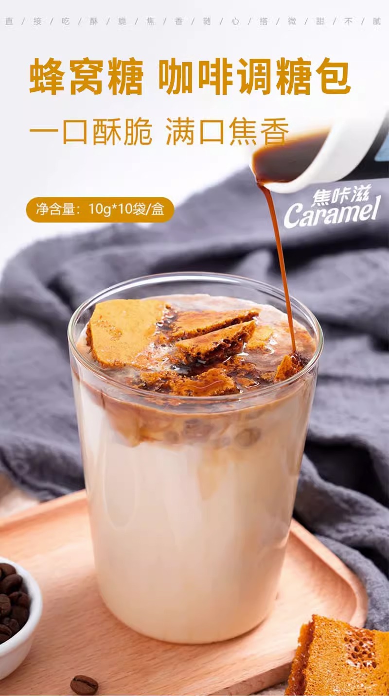 Jiao Kaizka Mero 커피 진한 베이지 블록 벌집 사탕 가방 라떼 화이트 설탕 커피 동반자 상업