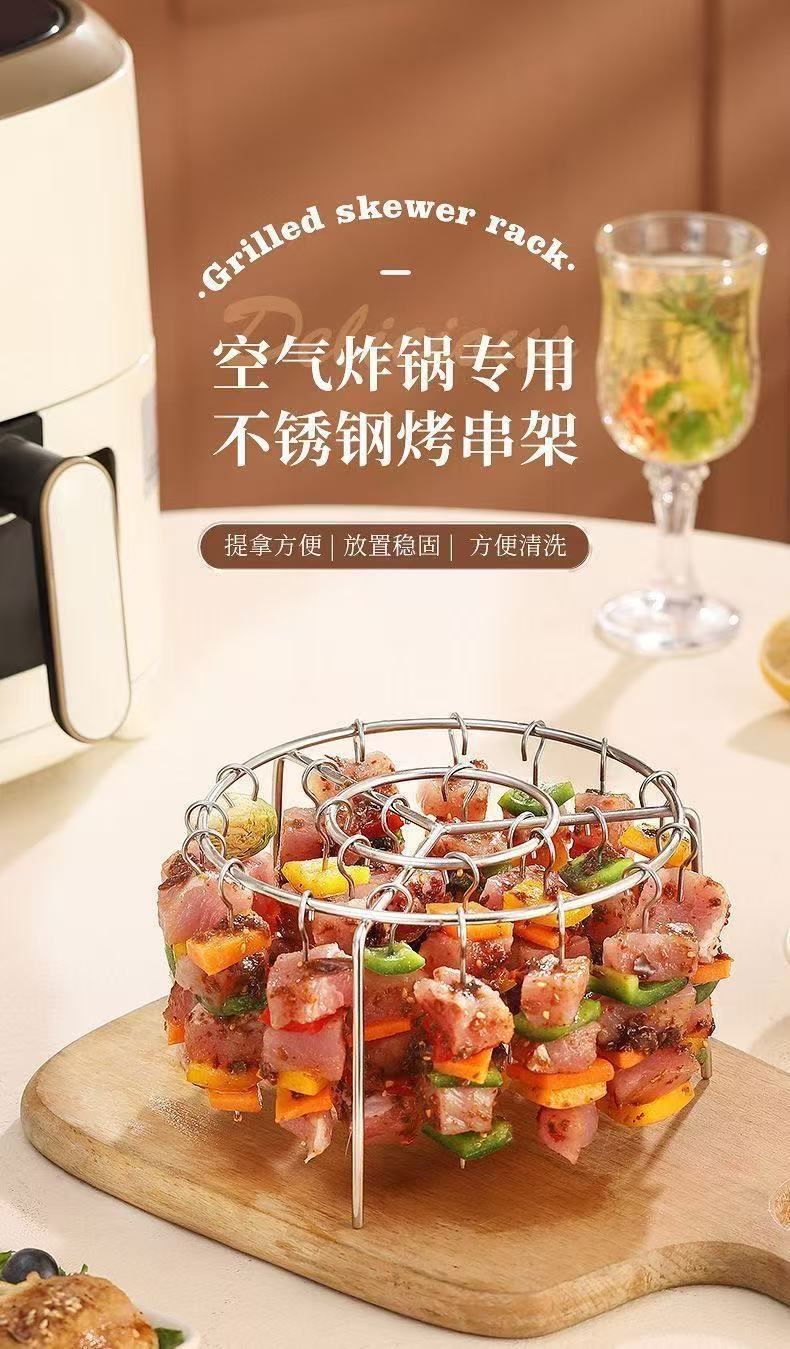 에어 프라이어 그릴 오븐 액세서리 스테인레스 스틸 수직 꼬치 바베큐 꼬치 홈 아티팩트 바베큐 그릴